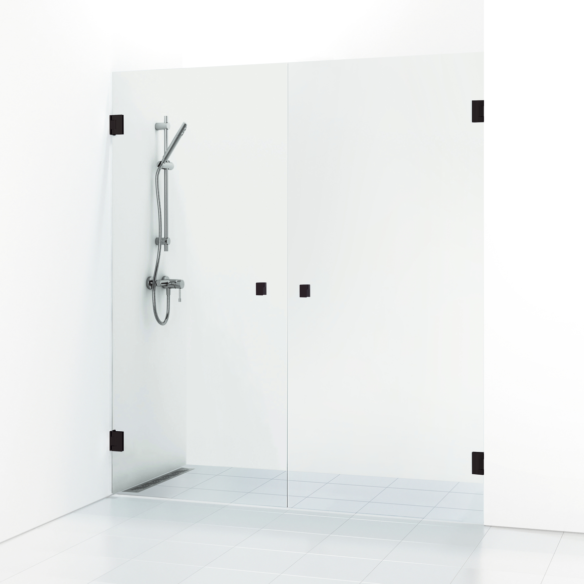 180° rak nischdusch 160 svart matt profil och kristallglas. Dubbel.