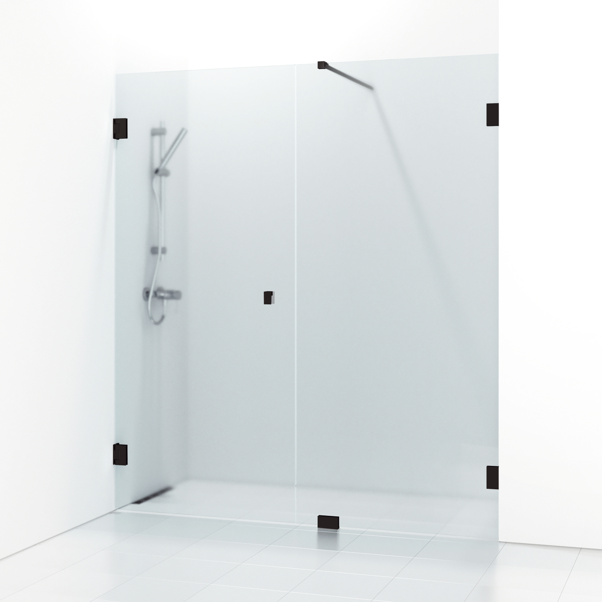 180° rak/fast nischdusch 160 svart matt profil och kristall frostglas. Dubbel.