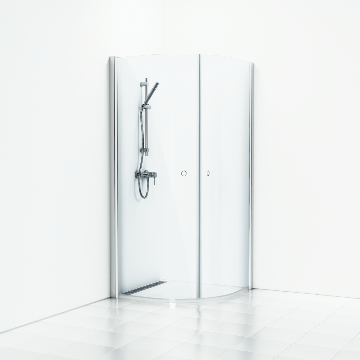 Hörn Halvrund Skoga med Hålgrepp Matt alu/Klarglas 80x90