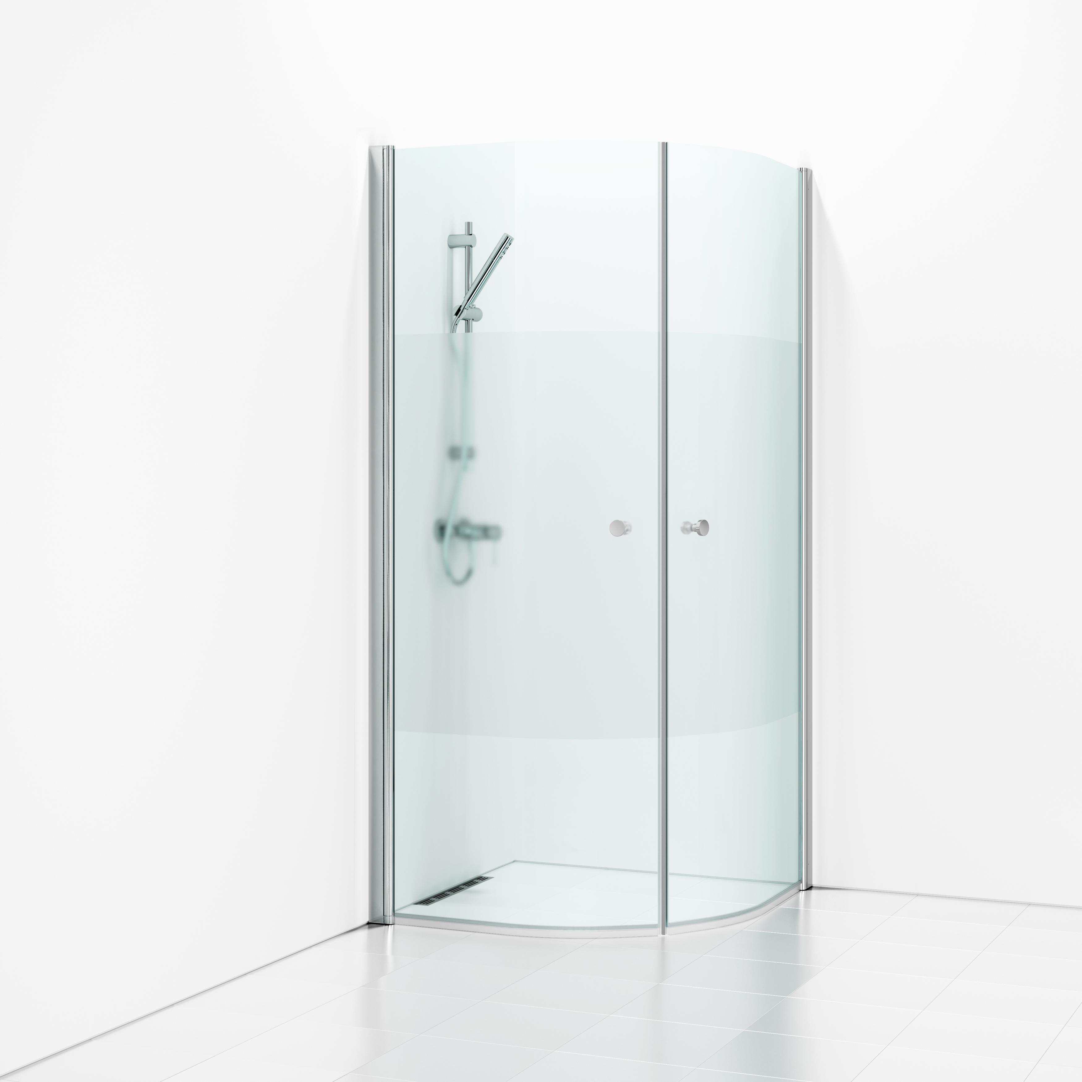 Duschdörr Halvrund Skoga Hålgrepp Blank alu/Halvfrost 90
