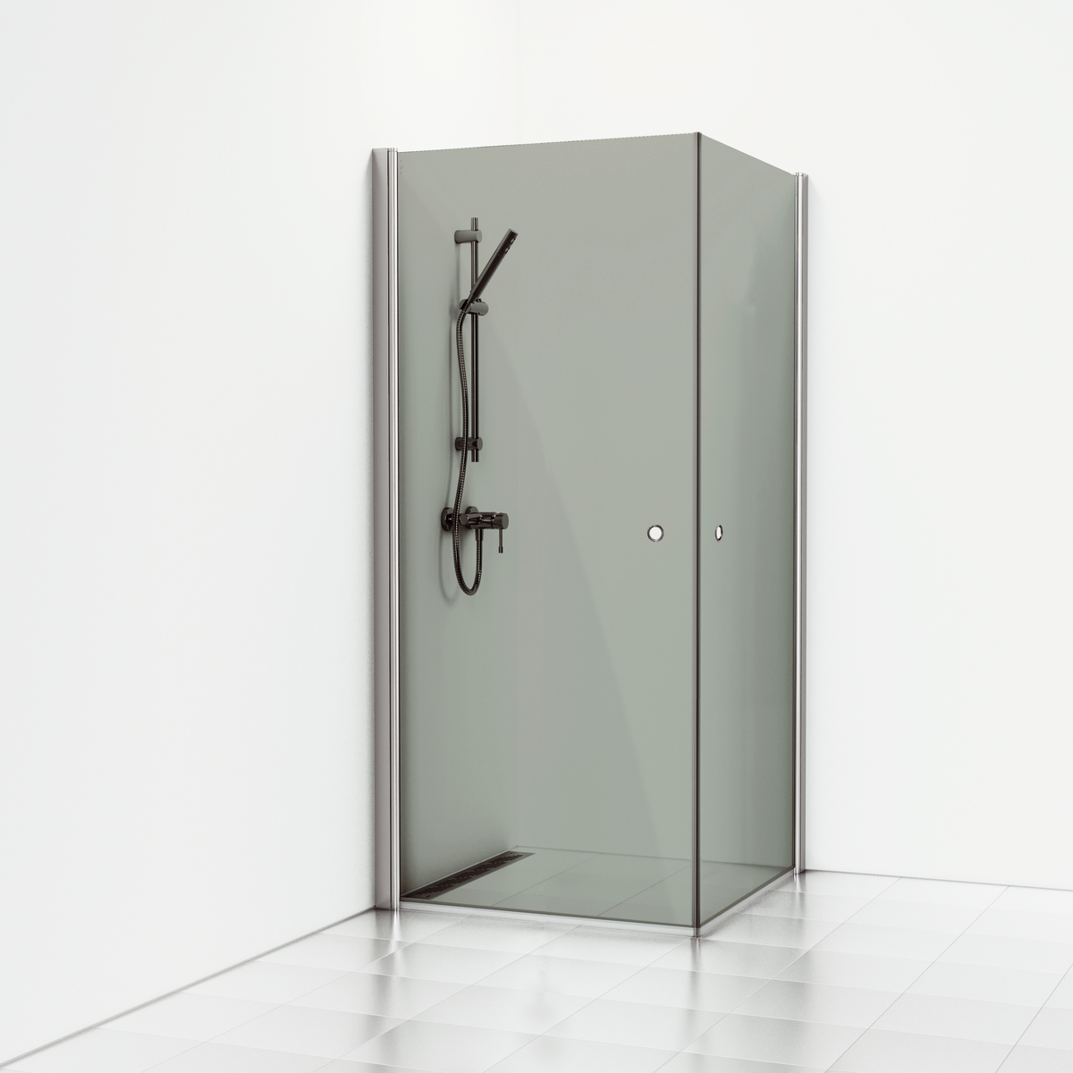 Hörn Rak Skoga med Hålgrepp Blank alu/Rökglas 80x90