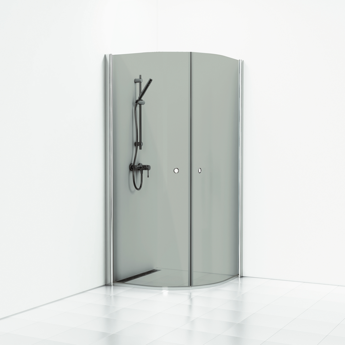 Hörn Halvrund Skoga med Hålgrepp Blank alu/Rökglas 90x90