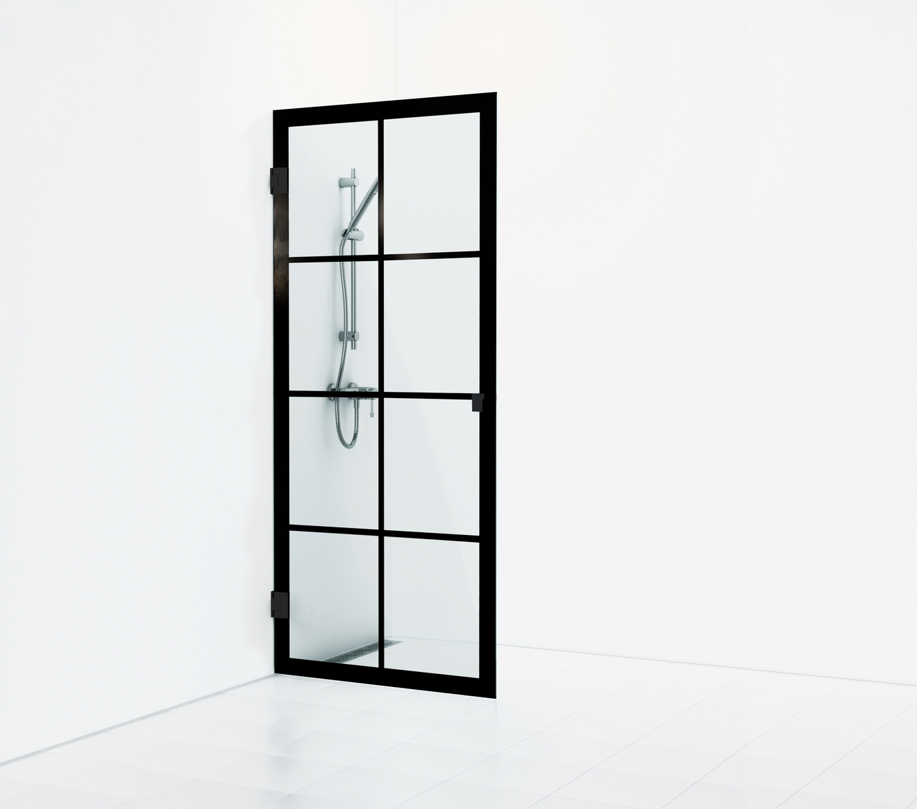 180° Rista rak skärmvägg 78x200 svart matt profil och klarglas. Enkel.