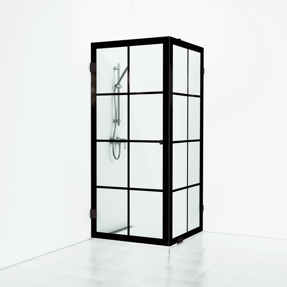180° Rista rak/fast hörndusch 90x80x200 svart matt profil och klarglas.