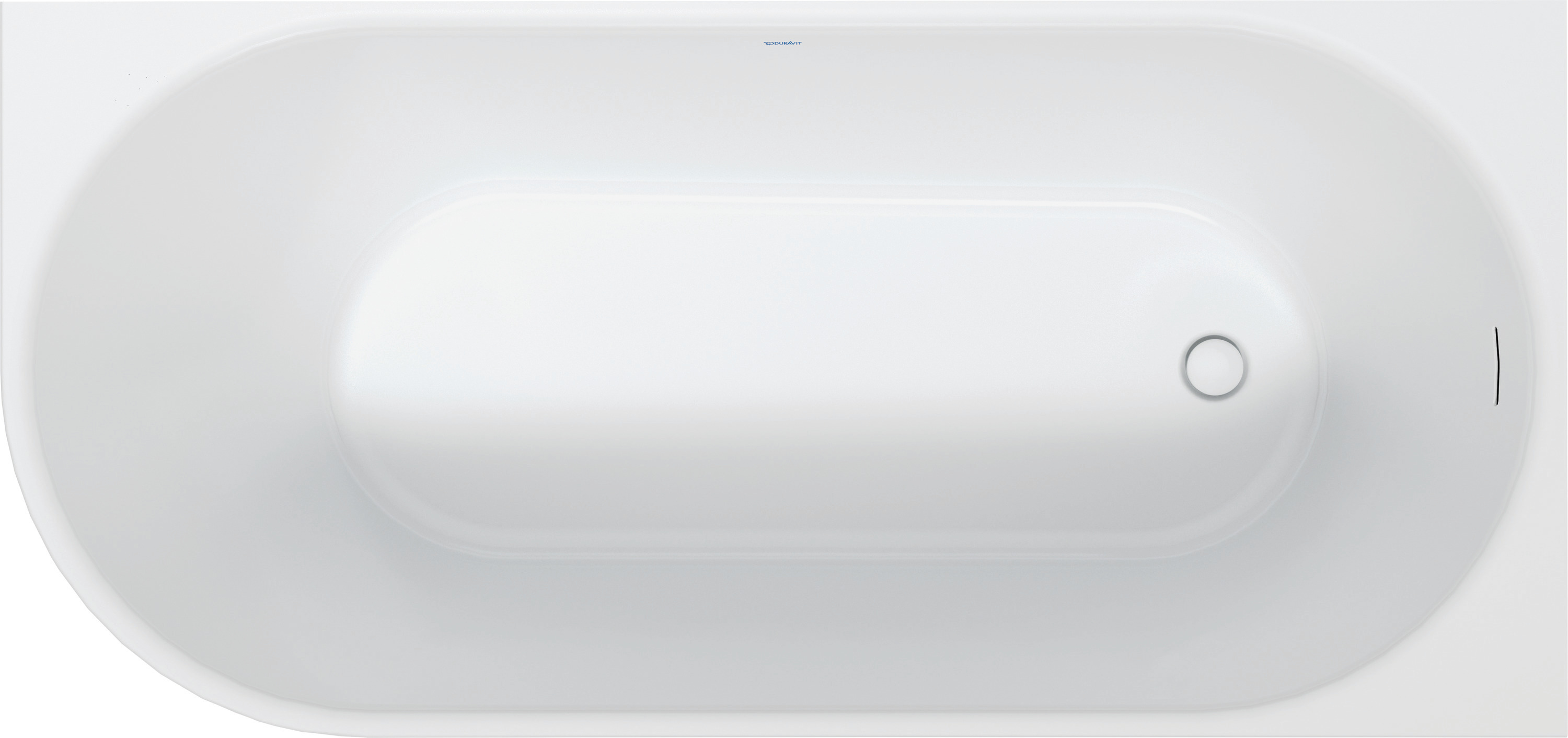 Duravit DuraSenja Badkar, 1500x750 mm Vit, Höger hörn, Sömlös akrylkåpa, Sanitetsakryl, Oval, Antal ryggstöd: 1, Bräddavlopp, Inkl. kabeldriven avloppssats och bräddavlopp, Speciellt kabel-drivet avloppssats med bräddavlopp - 700577000000000