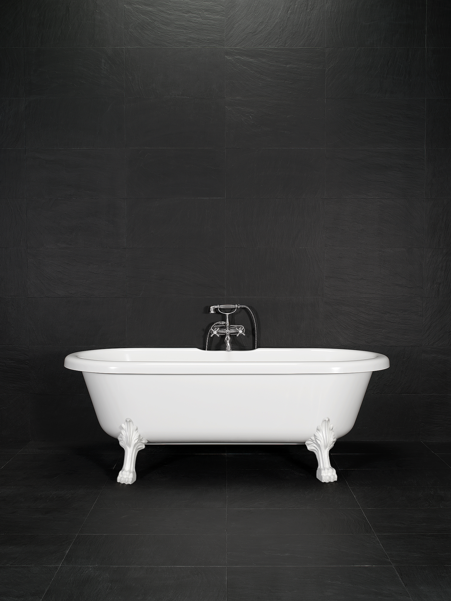 Badkar med raka former i vitt. Vita tassar