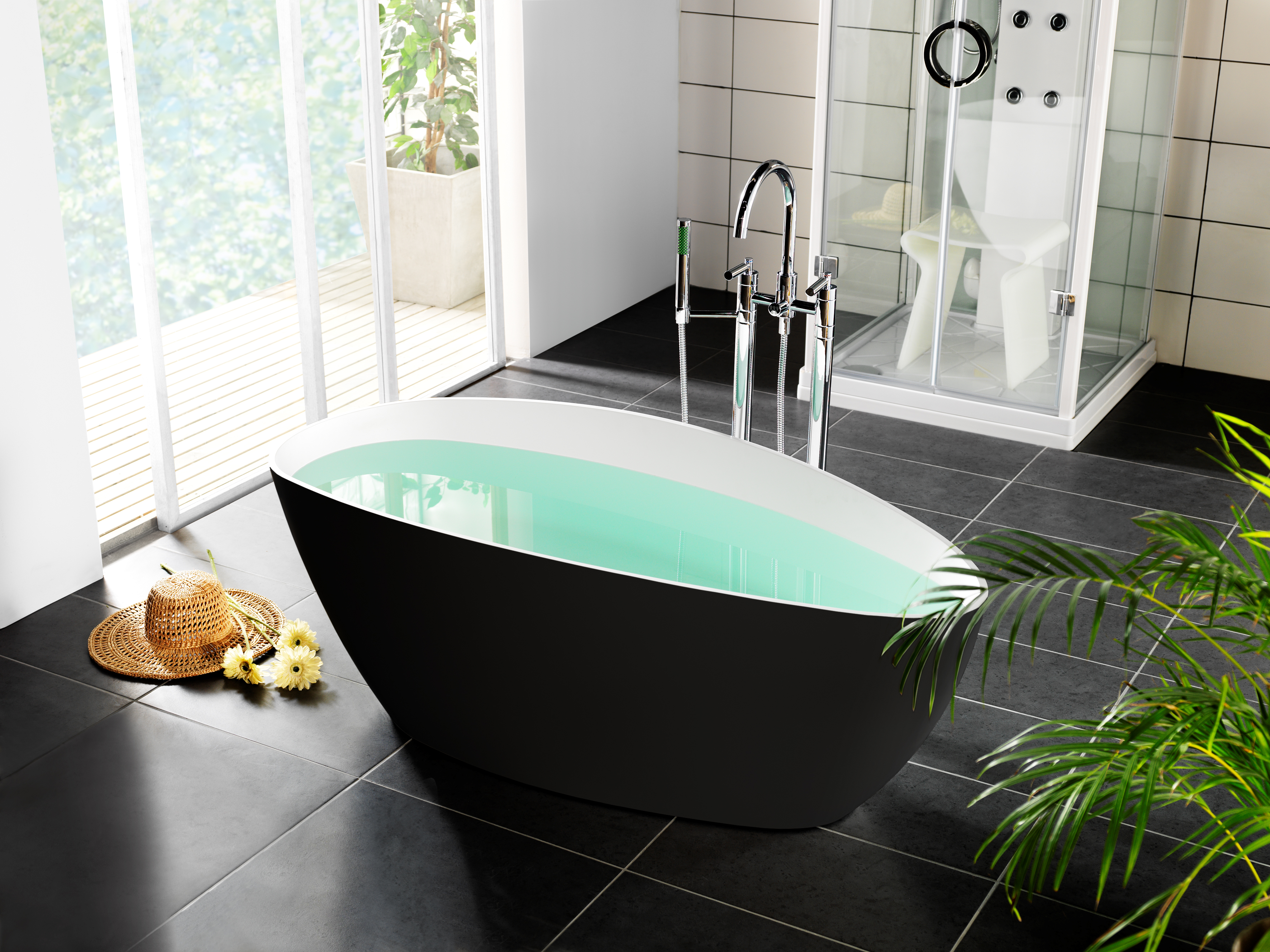Badkar med unik form och stabilitet i svart/vitt. 157cm.