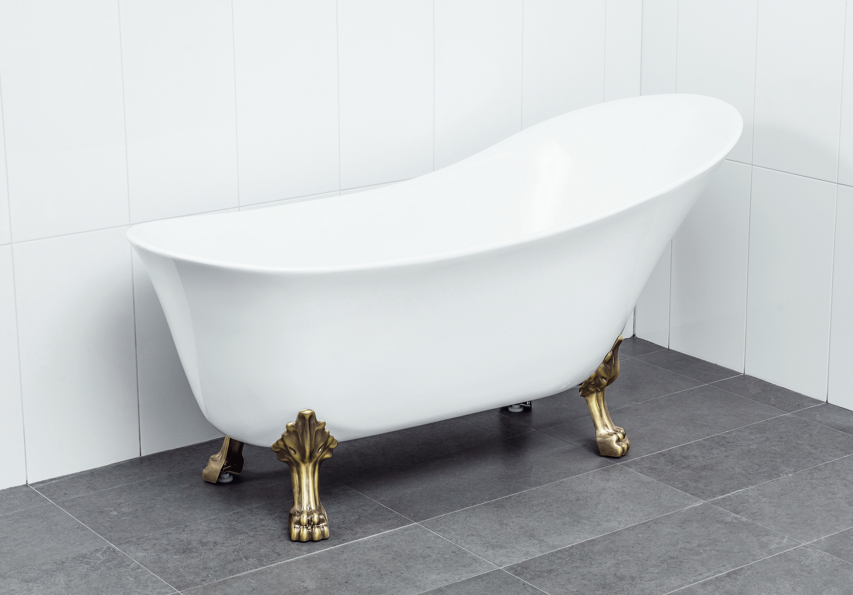 Tassbadkar i sanitetsakryl utan bräddavlopp. 1610x705x805mm. Baddjup 42cm. Badvattenvolym 135l inkl. badande. Tassar väljs till, finns i krom, brons samt mässing.