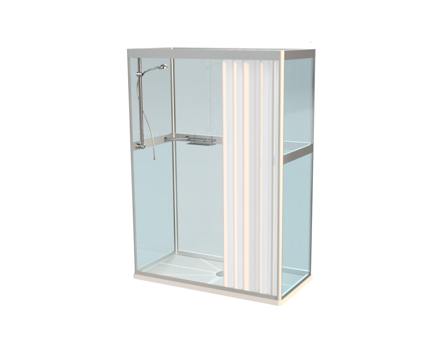 Vi har utvecklat ett duschrum som är unikt genom sin funktion, flexibilitet och form för att det ska passa de flesta. Dess flexibilitet gör att det kan utformas efter önskemål och behov. Det kan anpassas till de flesta badrumsmiljöer. Och det kan även specialtillverkas efter specifika mått.