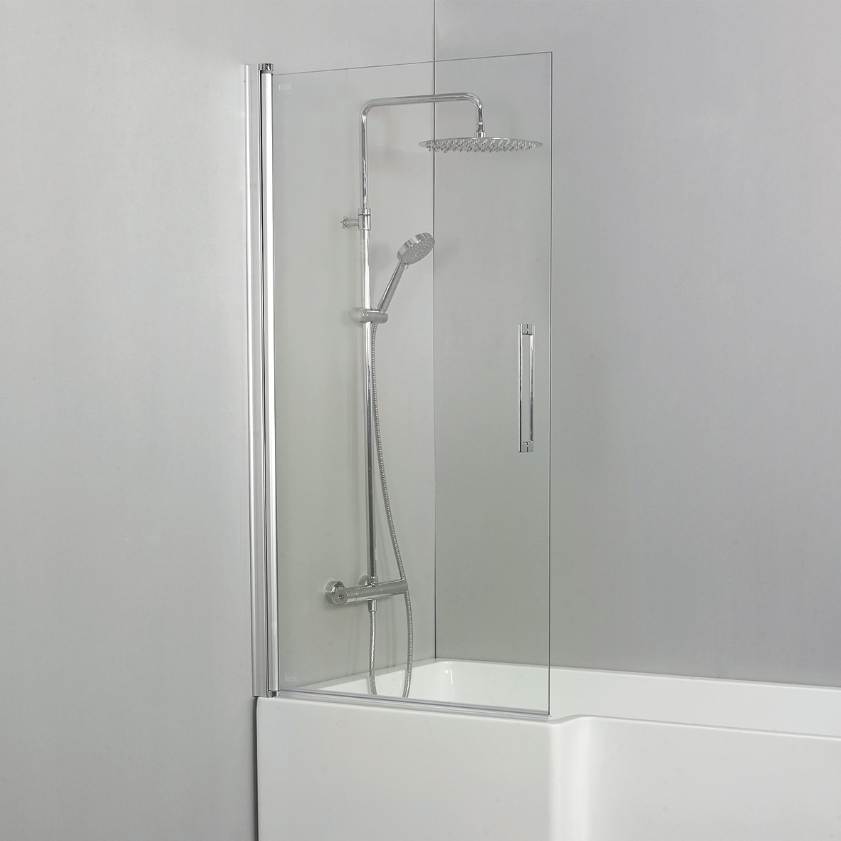 Med hjälp av en badkarsvägg kan du på ett enkelt och snyggt sätt skydda resten av ditt badrum från vattenstänk. Våra badkarsväggar är svängbara 180 grader och har en kraftigt polerad aluminiumprofil. En badkarsvägg är det perfekta komplement till ditt badrum, hos oss kan du även välja själv om du vill ha klarglas eller vallmomönster.