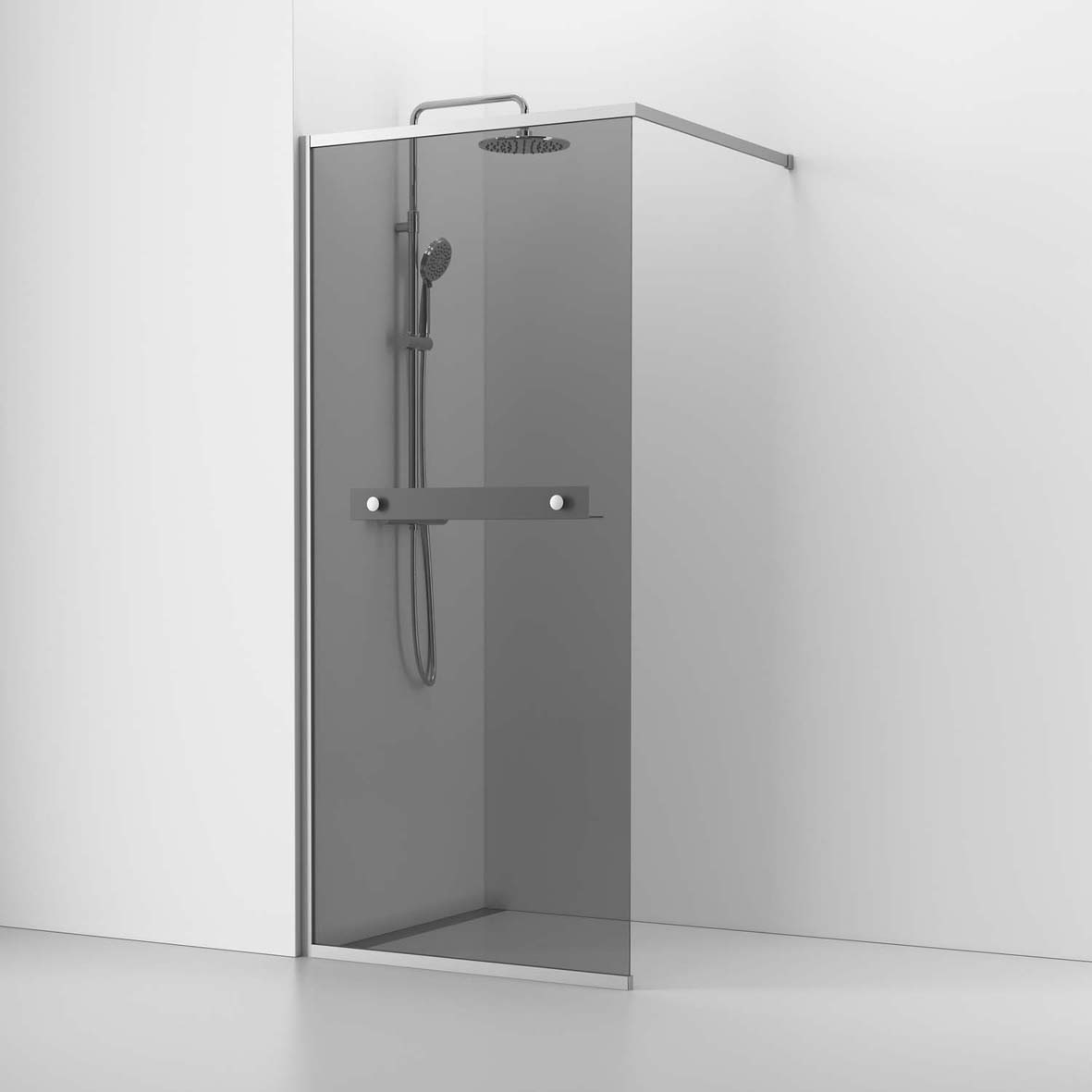 Skärmvägg Fast Langfoss Matt alu/Rökglas 80, H 200, Hylla