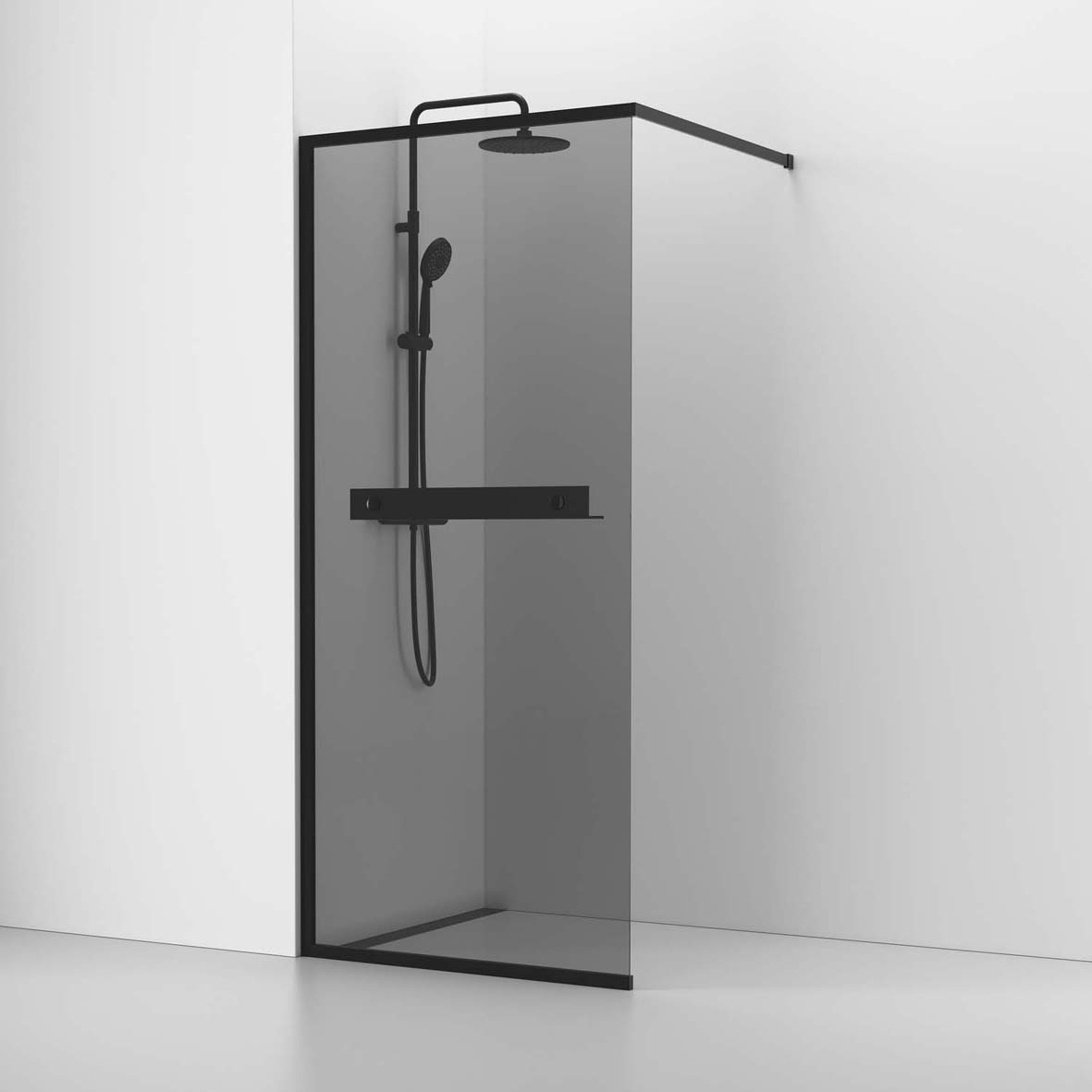 Skärmvägg Fast Langfoss Svart anod/Rökglas 80, H 200, Hylla