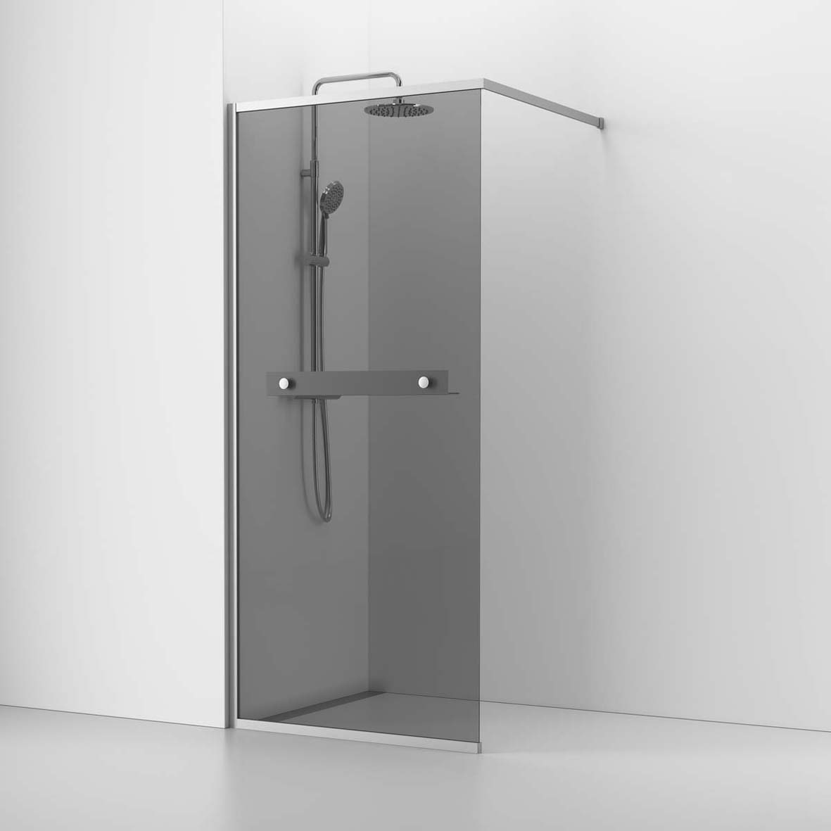 Skärmvägg Fast Langfoss Matt alu/Rökglas 80, H200, för Hylla