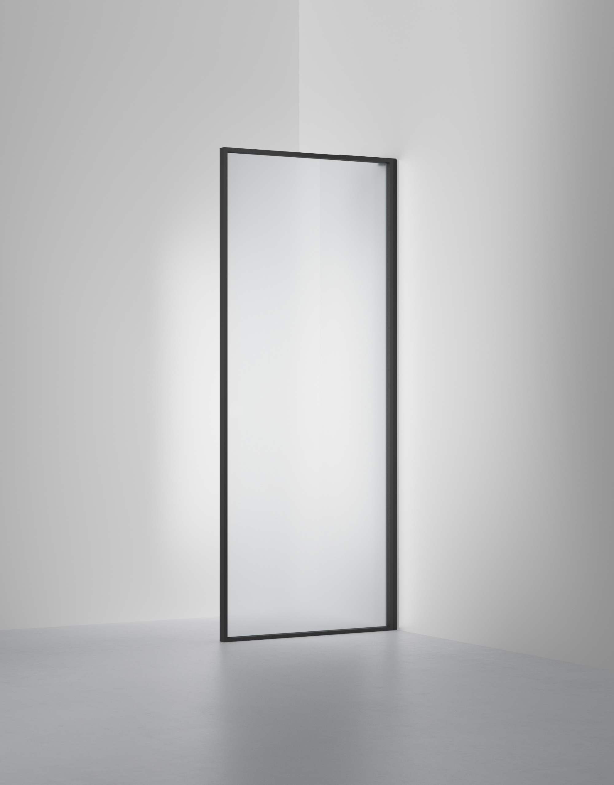 En fast vägg i 6 mm glas. Finns i 900 mm och måttanpassat utförande.