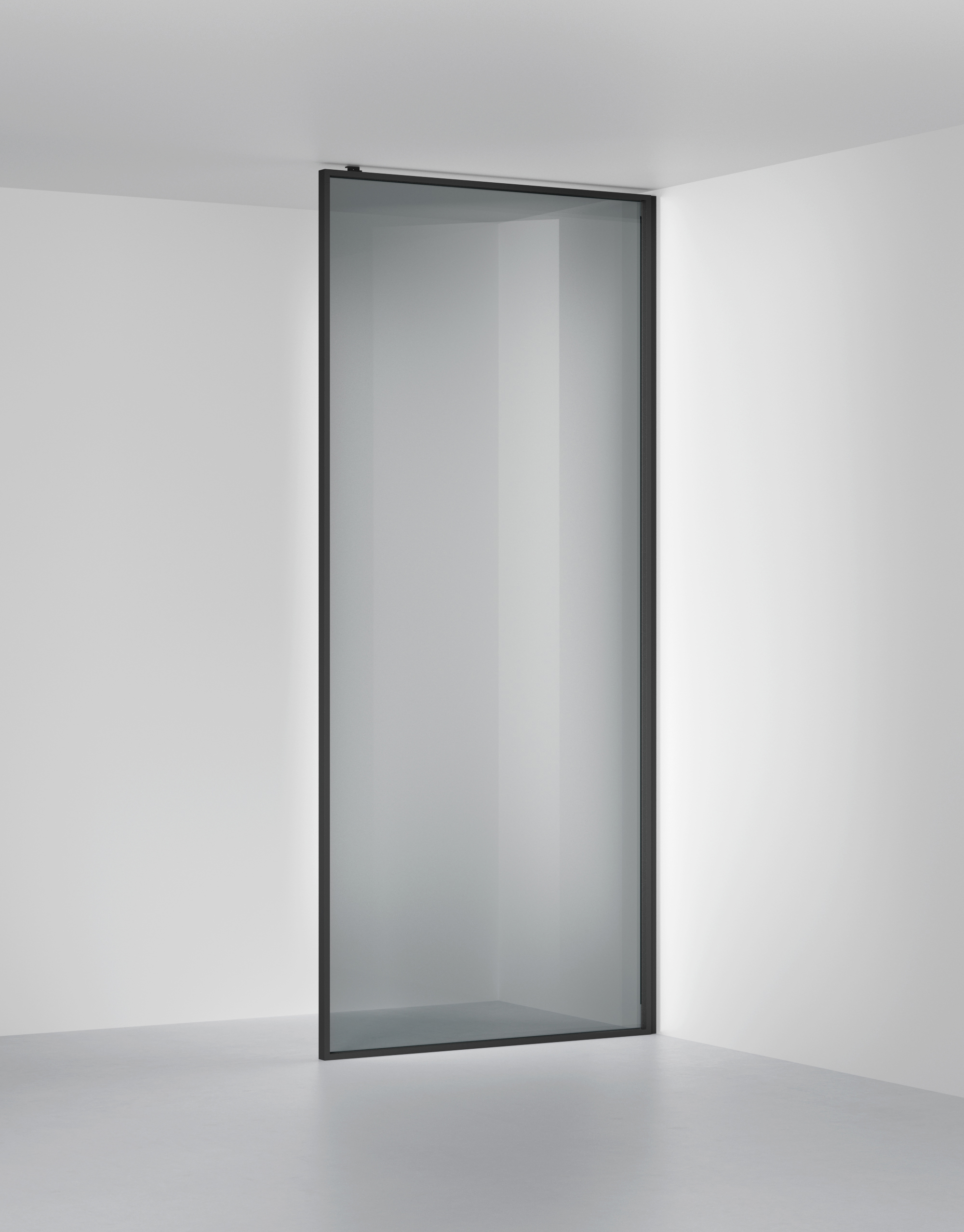 En fast vägg i 6 mm glas. Måttanpassas kostnadsfritt inom angivna intervall och från golv till tak upp till 2700 mm.