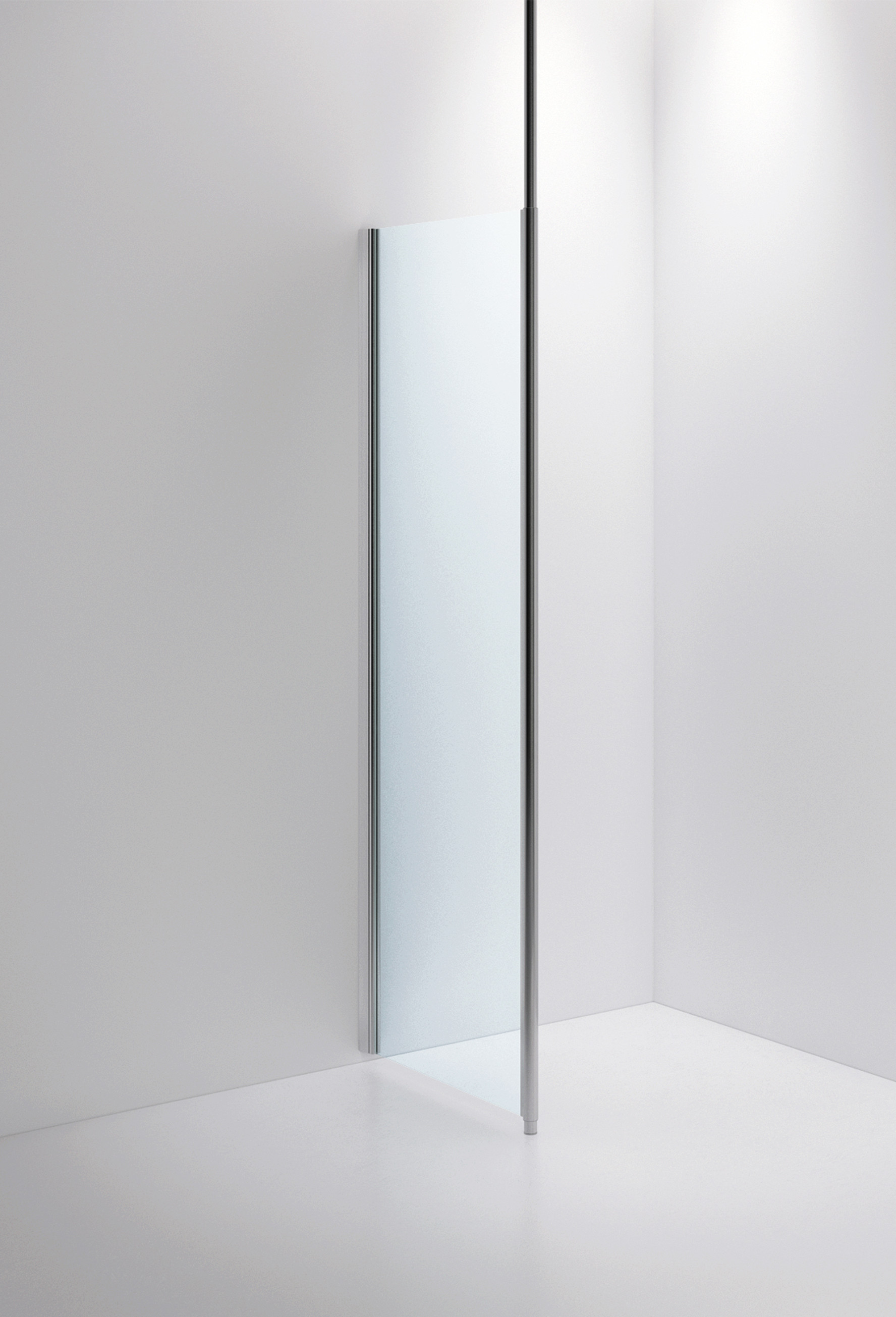 BASIC PRO Nelson är en enkel duschskärm i 6 mm klart säkerhetsglas. Modellen består av en fast glasvägg som spänns mellan golv och tak med hjälp av två stag.