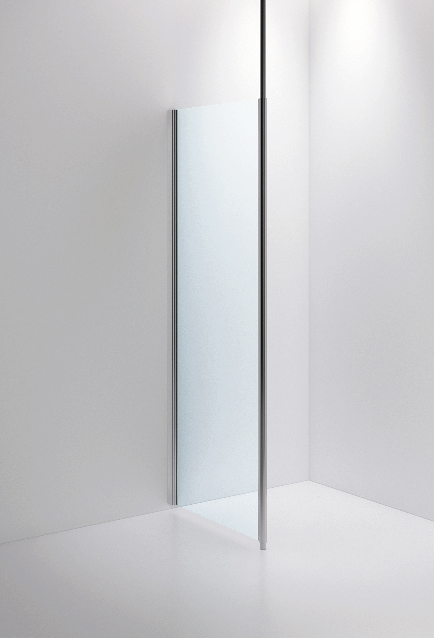 BASIC PRO Nelson är en enkel duschskärm i 6 mm klart säkerhetsglas. Modellen består av en fast glasvägg som spänns mellan golv och tak med hjälp av två stag.