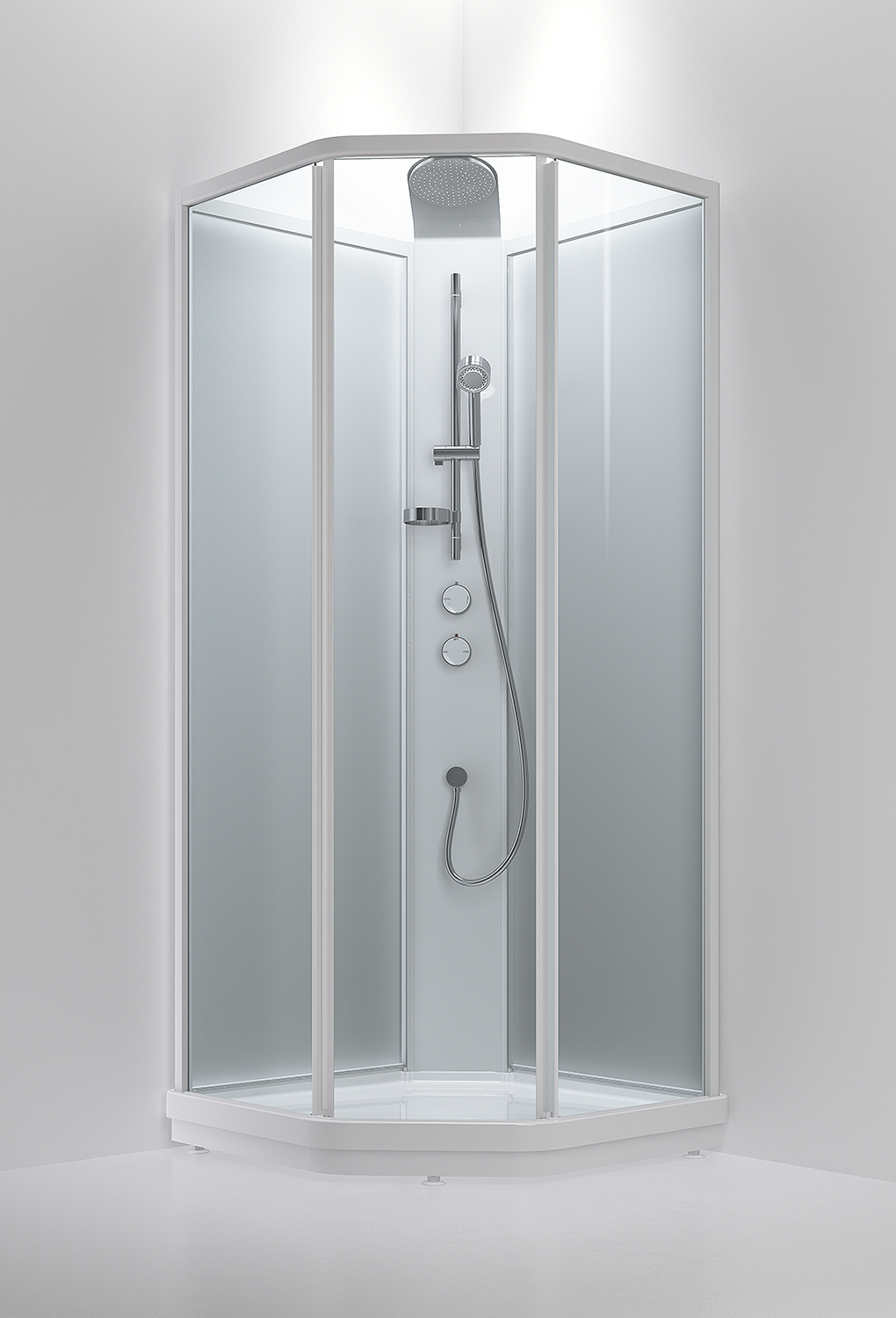 BRIC 3 är en duschkabin med integrerad blandare, takdusch och justerbar handdusch. Duschkaret är tillverkat i stabil gjutmarmor och lägre än normalt, vilket gör det enklare att stiga i och ur kabinen. Karet försett med hjul som gör det lätt att flytta vid rengöring.