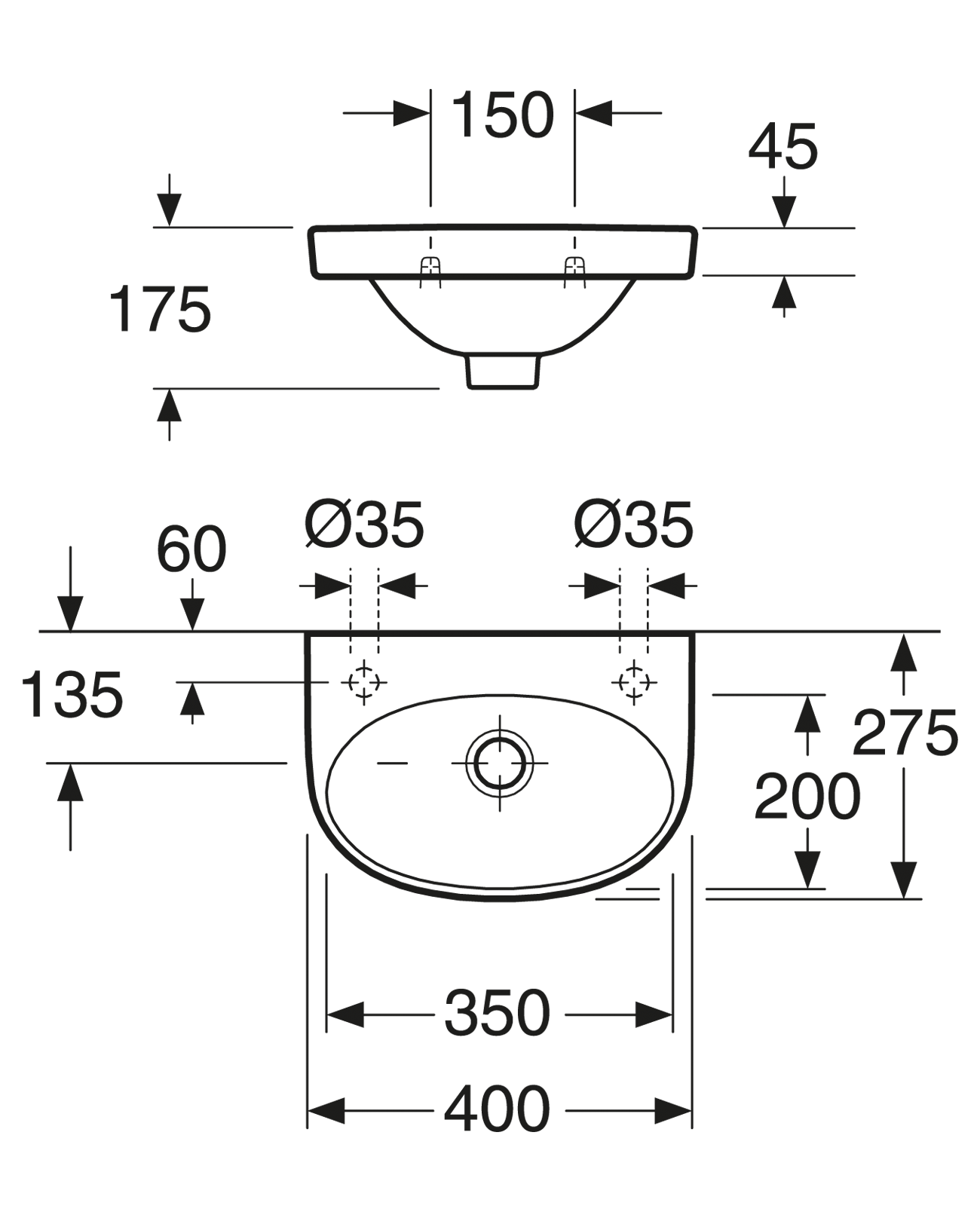 5540 Nautic tvättställ för bultmontage med blandarhål till vänster, bultar ingår
