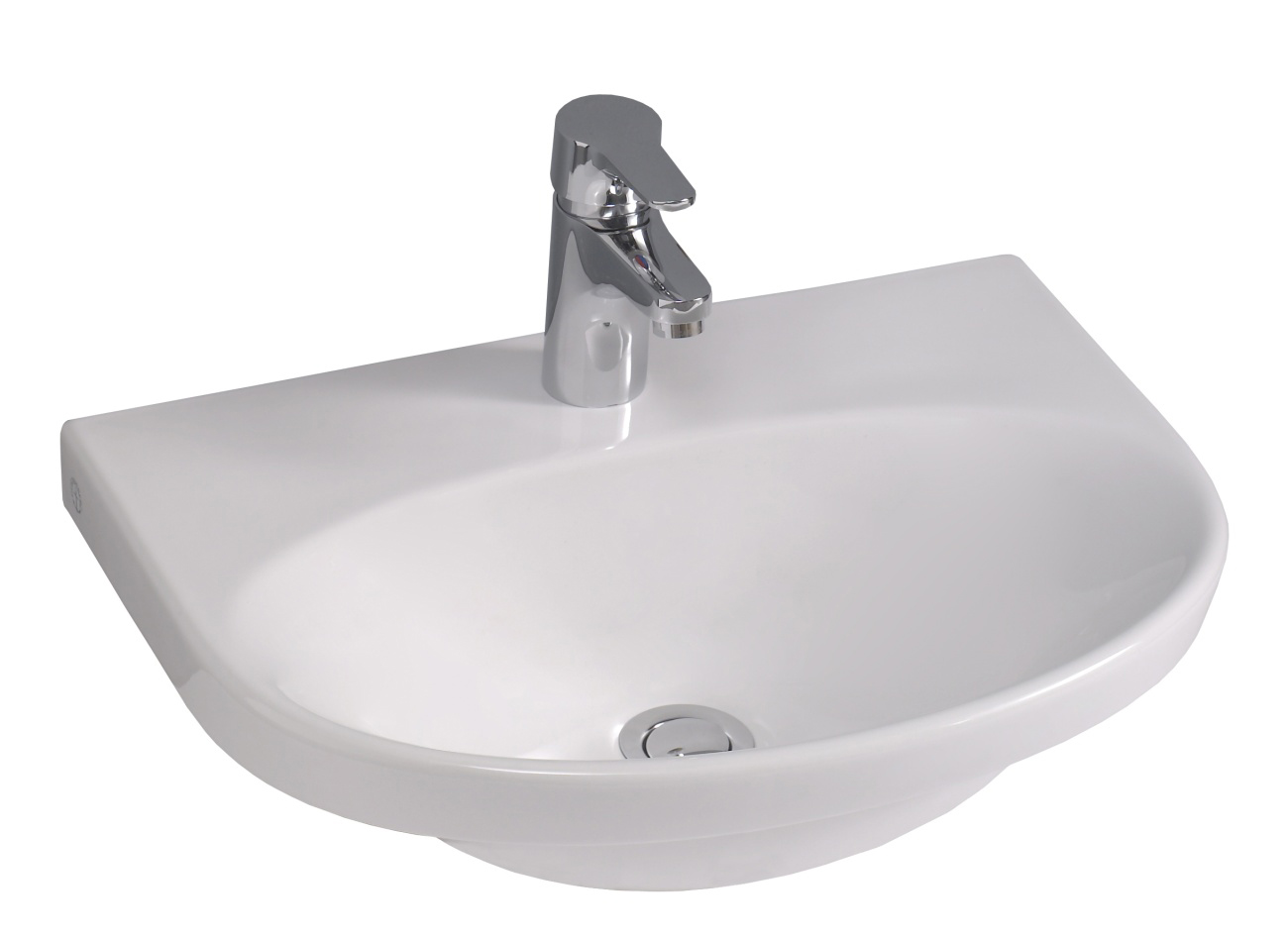 Utan bräddavloppshål. Montage med silventil rekommenderas för tvättställ utan bräddavlopp.