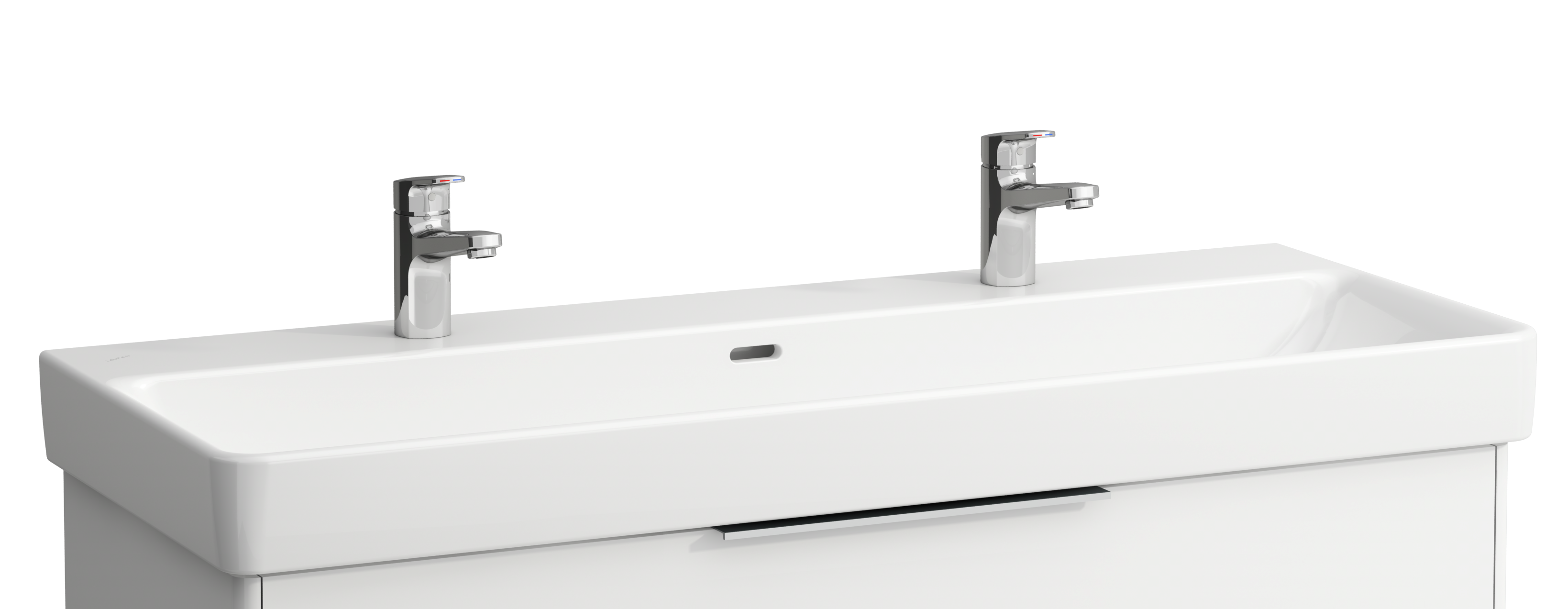 Dubbel tvättställ för bult eller Möbelmontage med 2 st blandarhål. B 1200mm D 465mm H 95mm (175mm)
