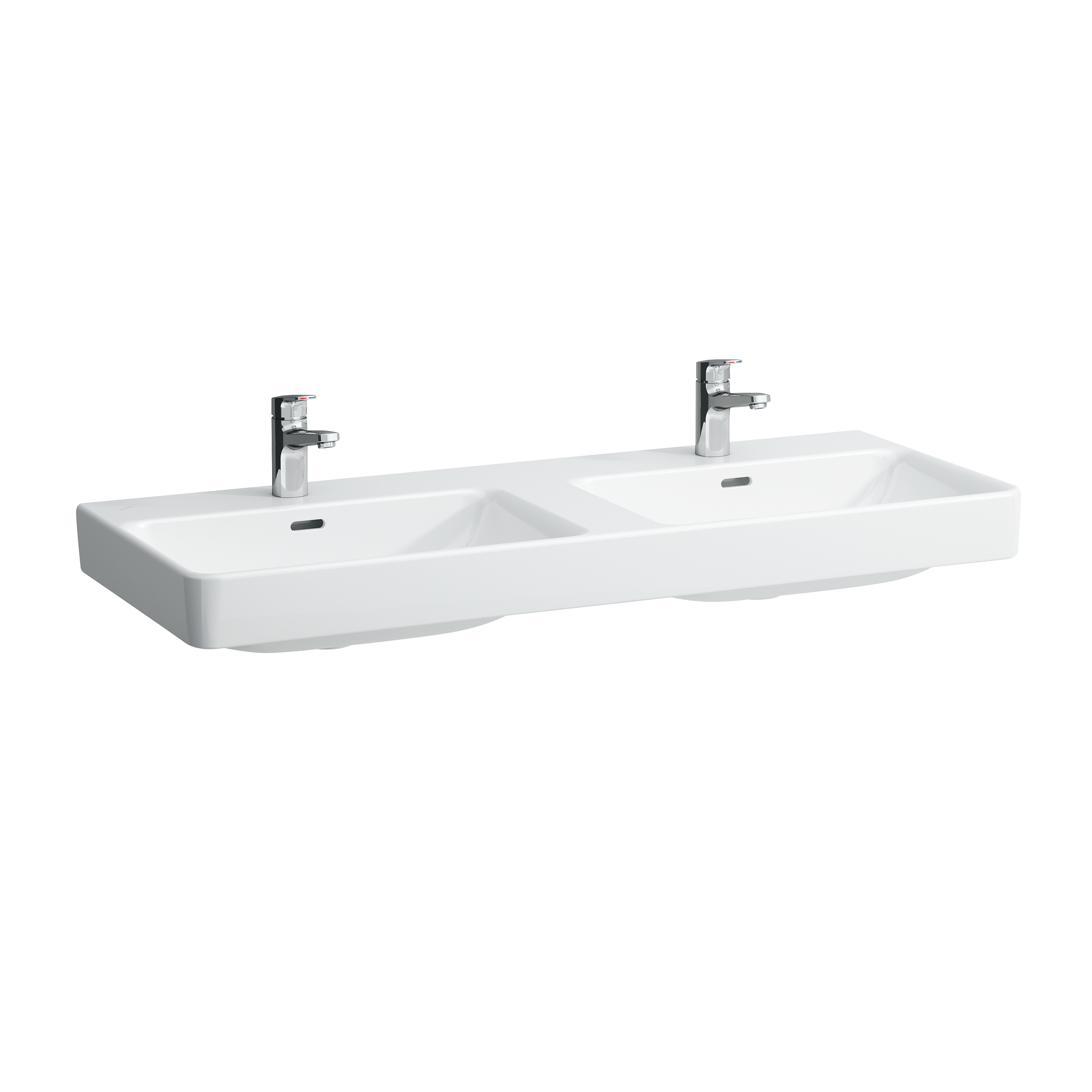 Dubbel tvättställ med 2 bassänger för bult eller Möbelmontage med 2 st blandarhål. B 1200mm D 465mm H 95mm (175mm)