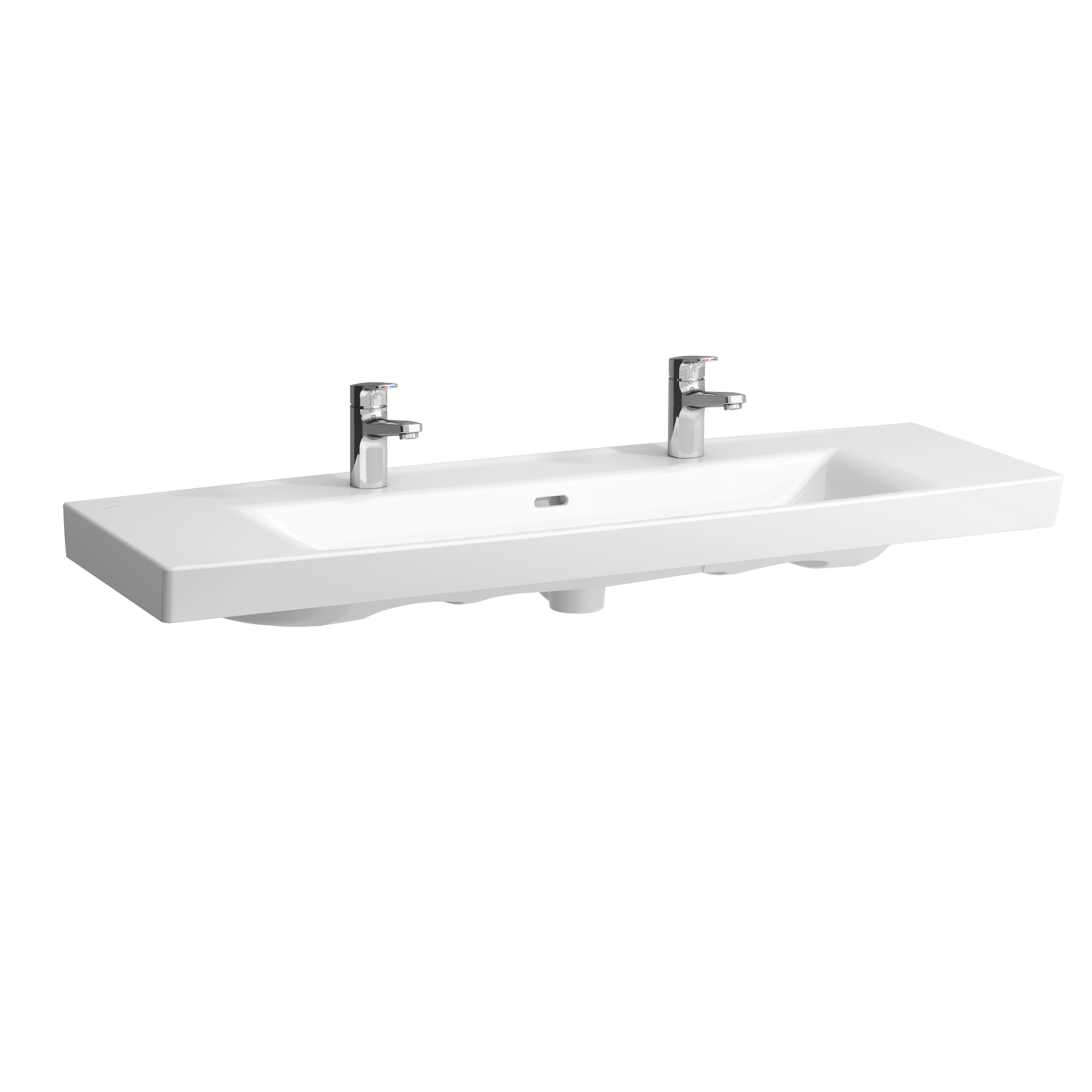 Dubbel Tvättställ för bult eller Möbelmontage med avställningsyta till höger och vänster med hål för 2 st blandare. B 1250mm D 420mm H 70mm (160mm)