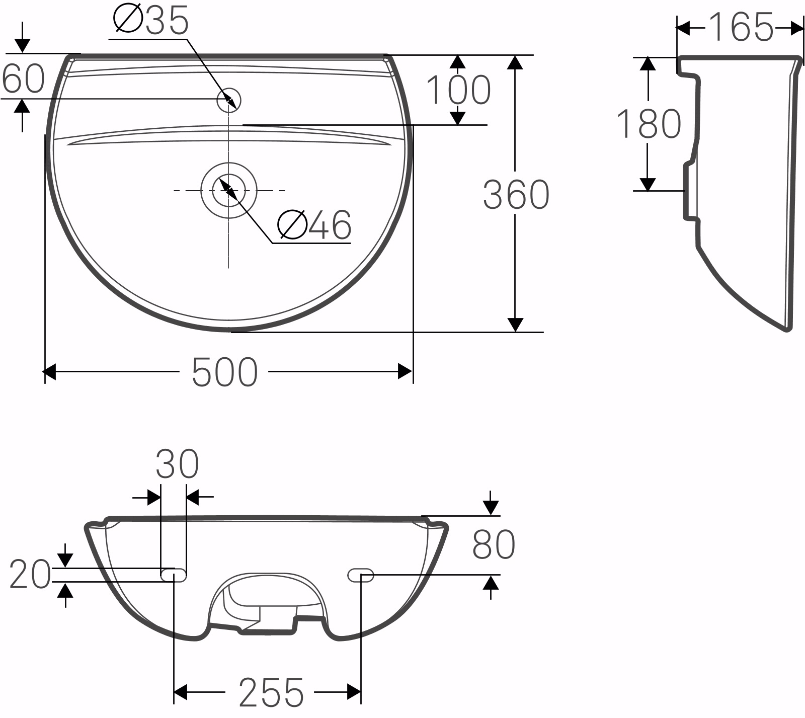 Ifö Spira tvättställ 50 cm, rund, bult, utan kranhål