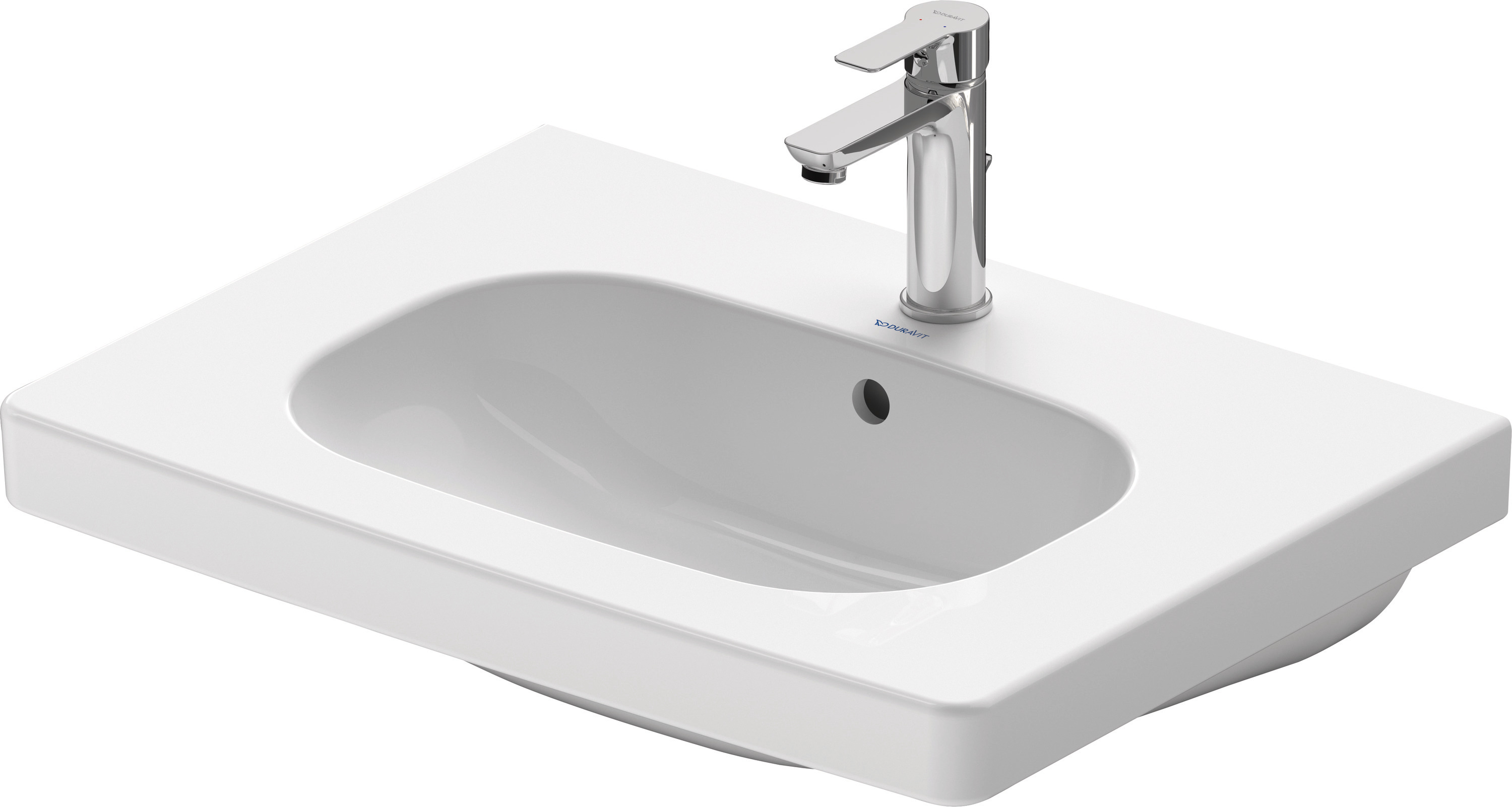 Duravit D-Code Tvättställ 650 mm Vit Högblank, Armaturhålsplattform, Antal hål för armatur: 1, Bräddavlopp - 03426500002