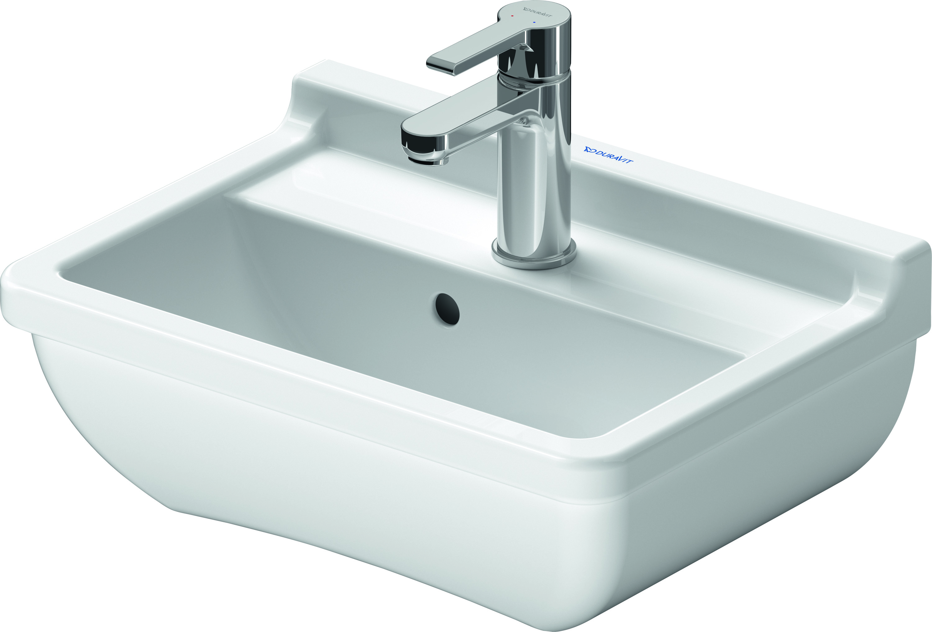 Duravit Starck 3 Tvättställ 450 mm Vit Högblank, Armaturhålsplattform, Antal hål för armatur: 1, Bräddavlopp - 0750450000