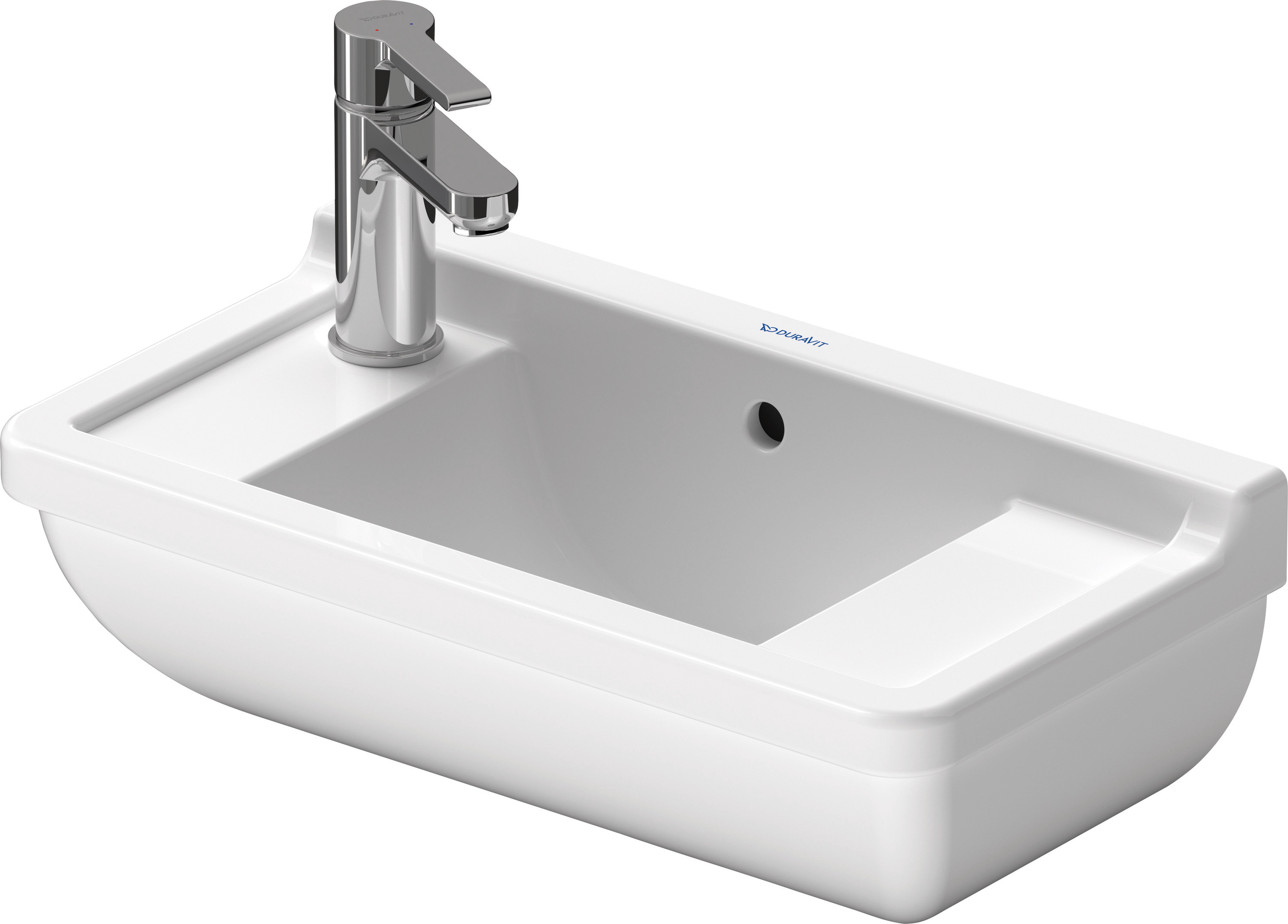 Duravit Starck 3 Tvättställ 500 mm Vit Högblank, Armaturhålsplattform, Antal hål för armatur: 0, Bräddavlopp - 0751500000