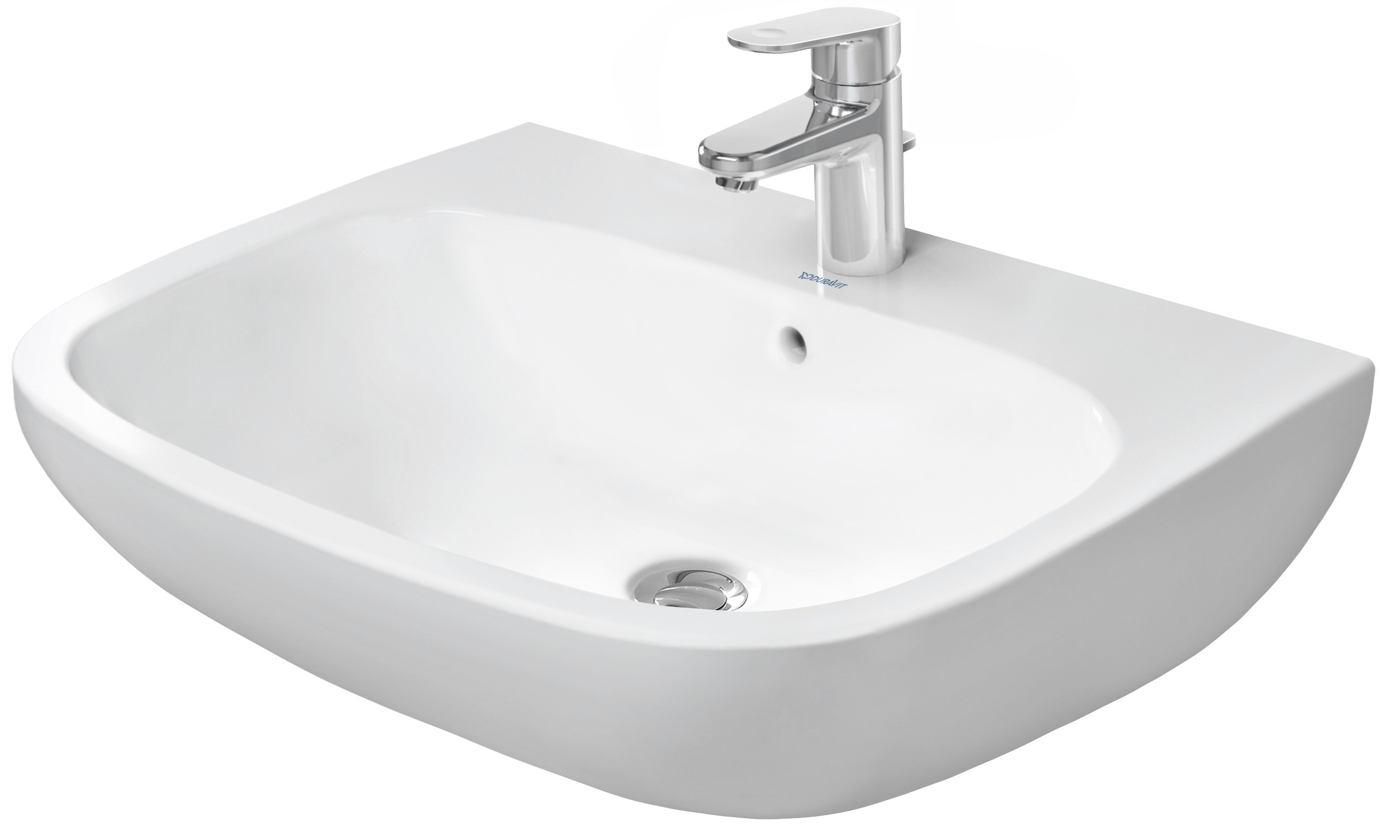 Duravit D-Code Tvättställ 650 mm Vit Högblank, Armaturhålsplattform, Antal hål för armatur: 1, Bräddavlopp - 23106500002