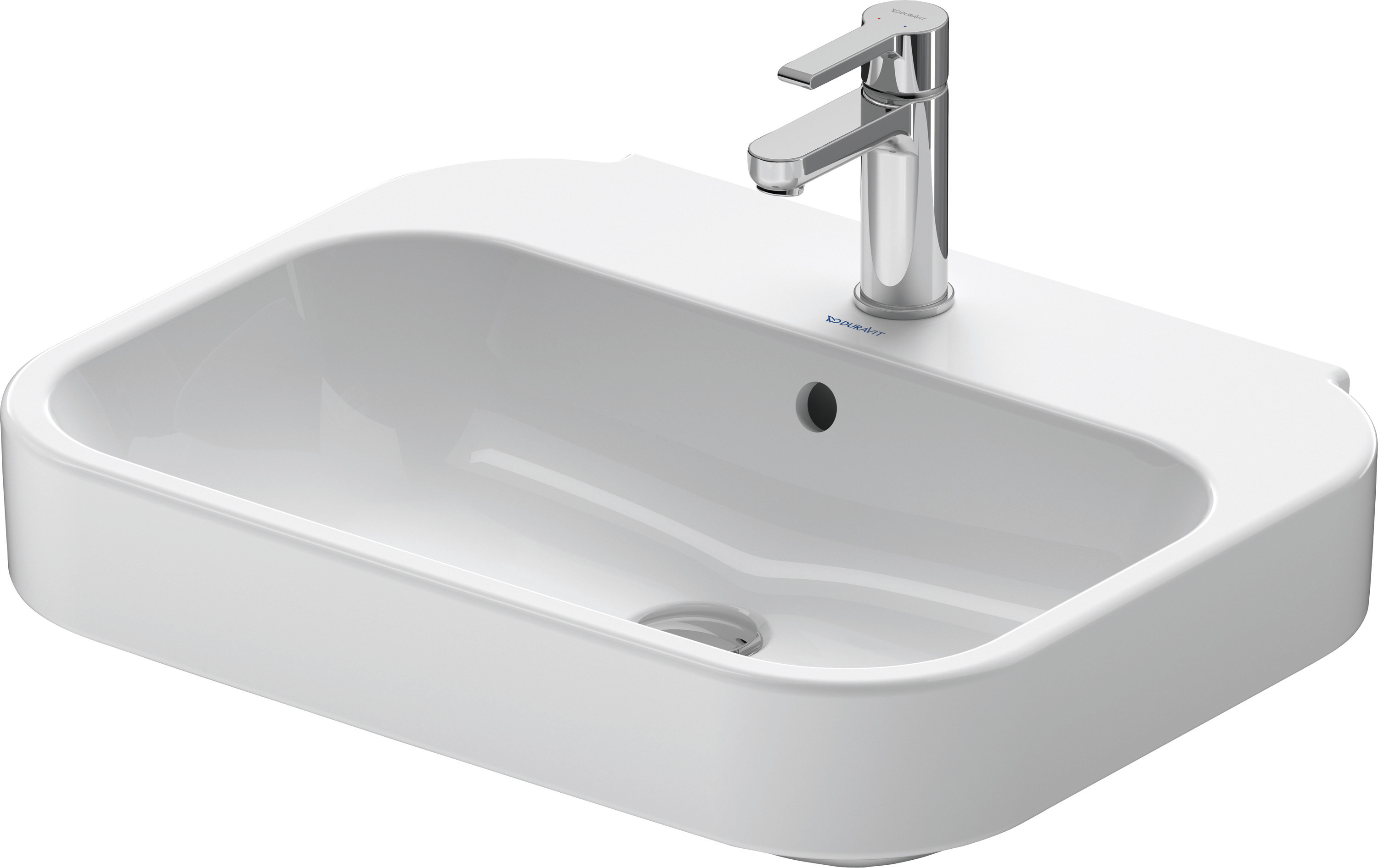 Duravit Happy D.2 Tvättställ 600 mm Vit Högblank, Armaturhålsplattform, Antal hål för armatur: 1, Bräddavlopp - 2316600000