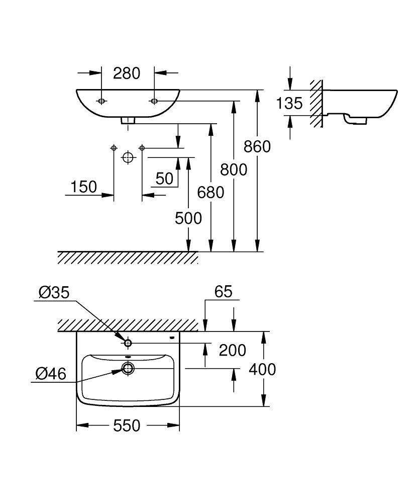 BAUEDGE KERAMIK TVÄT TSTÄLL 550MM,395MM,140MM