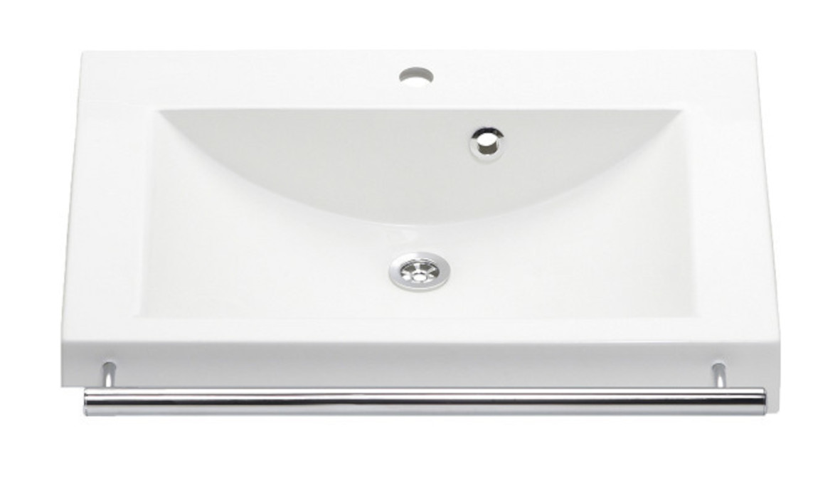 Gaius Life Tvättställ, vit, förkromat rakt stödhandtag, är gjorda av slitstark gjutmarmor. Höger- och vänsterhänta tvättställ finns tillgängliga.