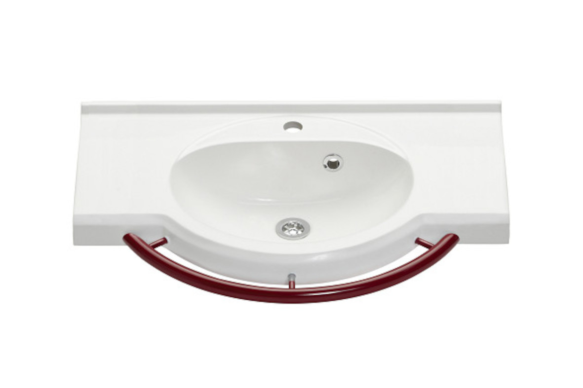Gaius Senior Tvättställ, vit, rött stödhandtag är gjorda av slitstark gjutmarmor. Ytterligare kontrastfärger finns tillgängliga för stödhantaget
