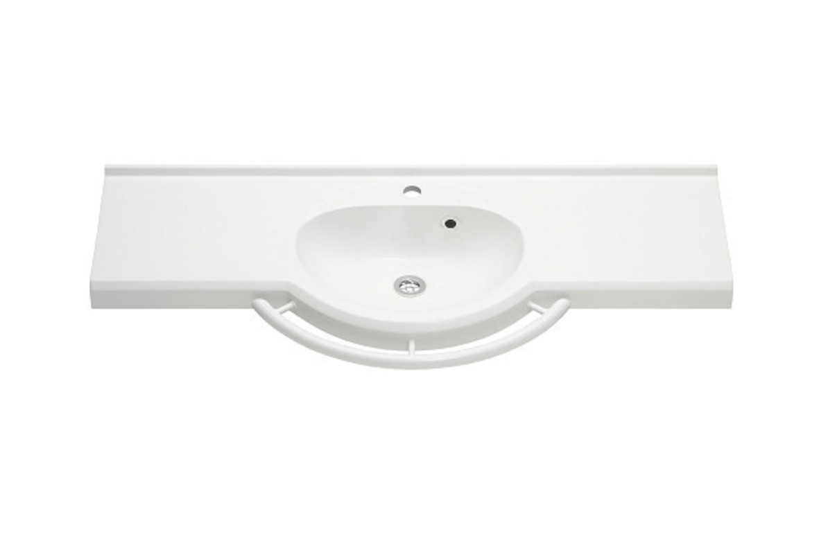 Gaius Senior Tvättställ, 1200mm, vit, rött stödhandtag är gjorda av slitstark gjutmarmor. Ytterligare kontrastfärger finns tillgängliga för stödhantaget