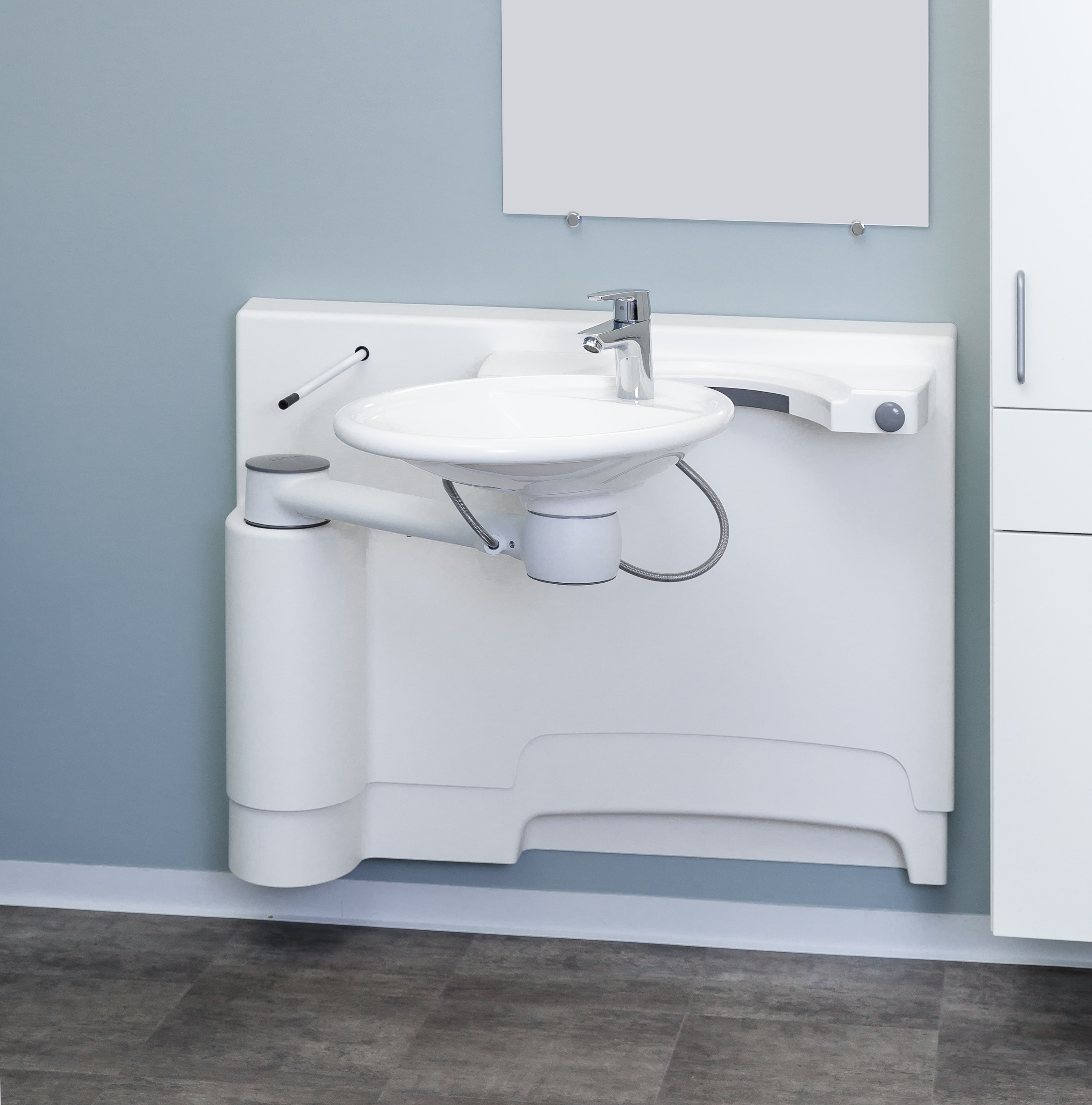 Svingbar vask og dock-in samlet i en komplet højdejusterbar enhed. Vasken er monteret til højre og dock-in til venstre.180 graders svingarm samt ekstra 180 graders rotation i oval vask. Vask og dock-in kan højdejusteres 200mm med håndsving. Indhak i afdækning for optimal tilgang fra kørestol. Skjulte installationer. Inkl. Dock-in, armatur og VVS-kit. OBS: ovenstående vaske er eksklusiv vandlås. Skal tilkøbes med v.nr. 40-41170 hvis dette ønskes. Max brugervægt 80kg og 245Kg i Dock-In