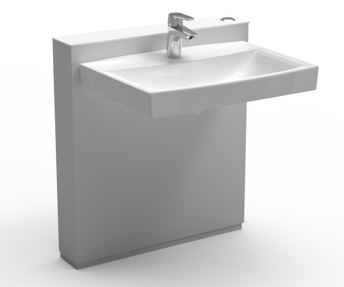 Håndvask kan højdejusteres trinløst elektrisk 300mm. Betjenes med fast betjening på unit. IP66 sikret til vådrum. Vasken er 60x42cm og i et enkel design. Unit er 12cm dyb og 65cm bred. Inklusiv vask, VVS-kit og armatur. Max brugervægt 200 kg.
