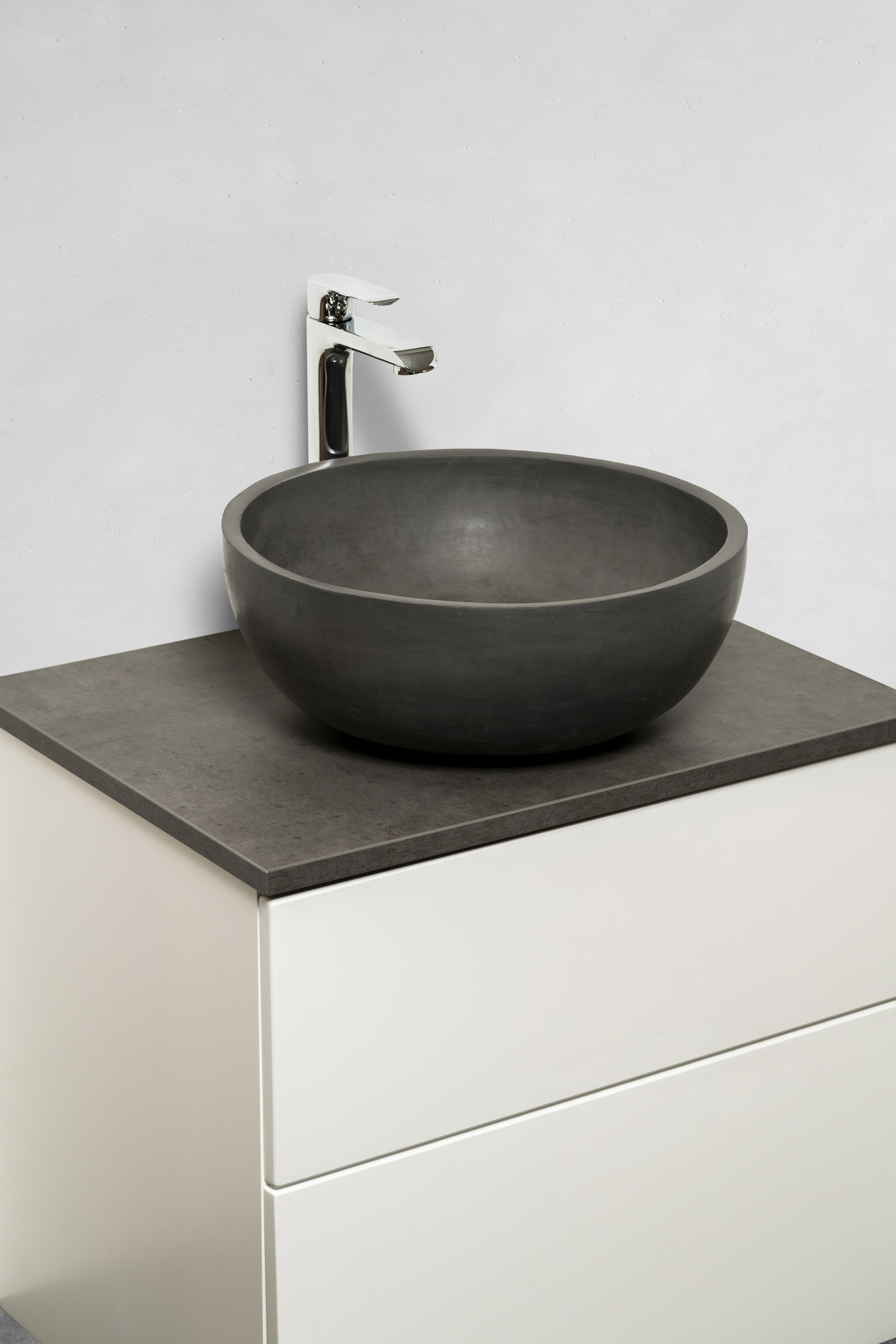 Fristående handfat i cement. Ej överfyllnadsskydd (CL00) (Här vet jag inte riktigt vilka värdeord vi vill använda.. Rå, industriell känsla är ju säljande för vissa men inte för andra ;-)) Naturligt, jordnära, SPA-feeling (CJ)