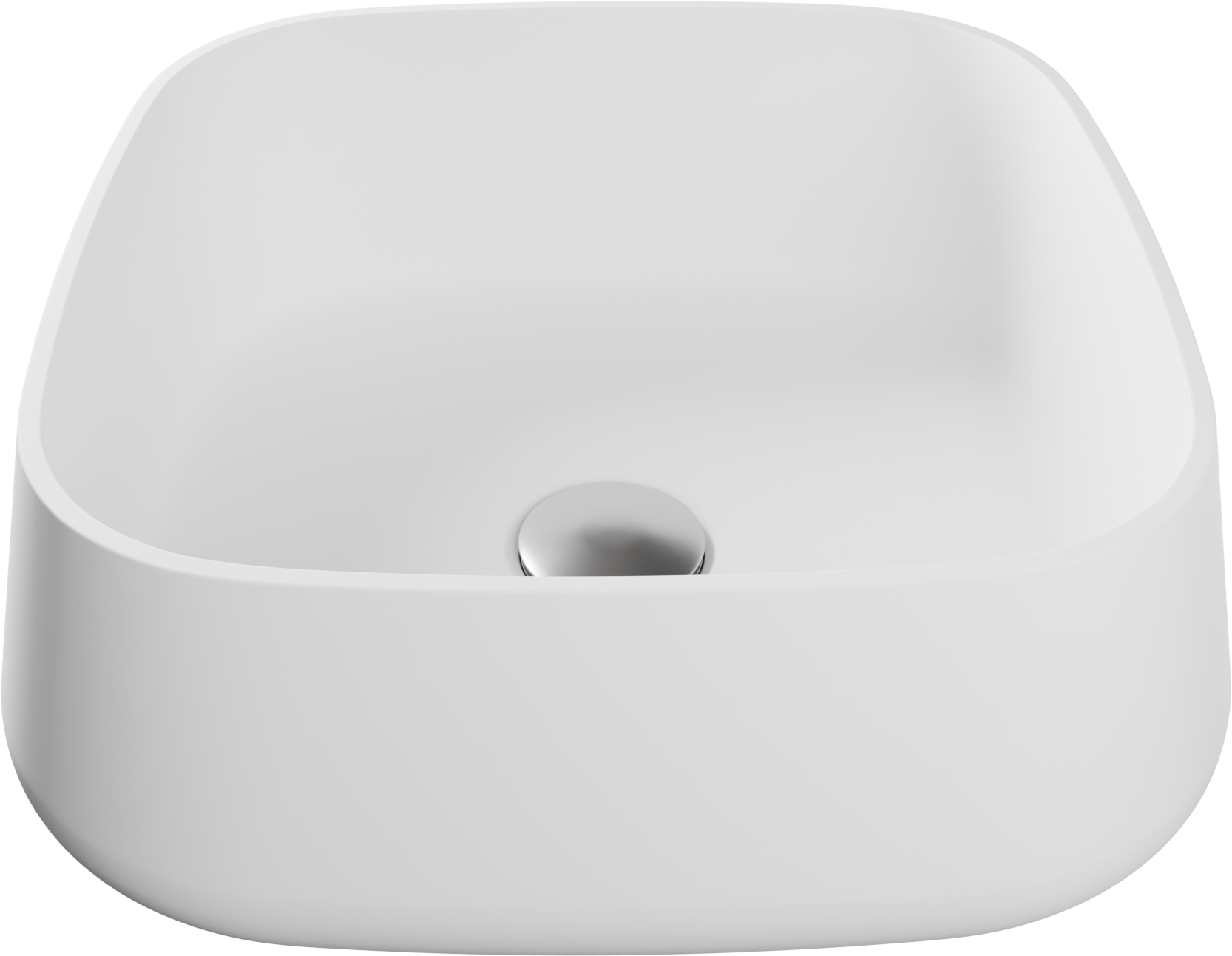 Fristående tvättställ i Solid Surface utan bräddavlopp.