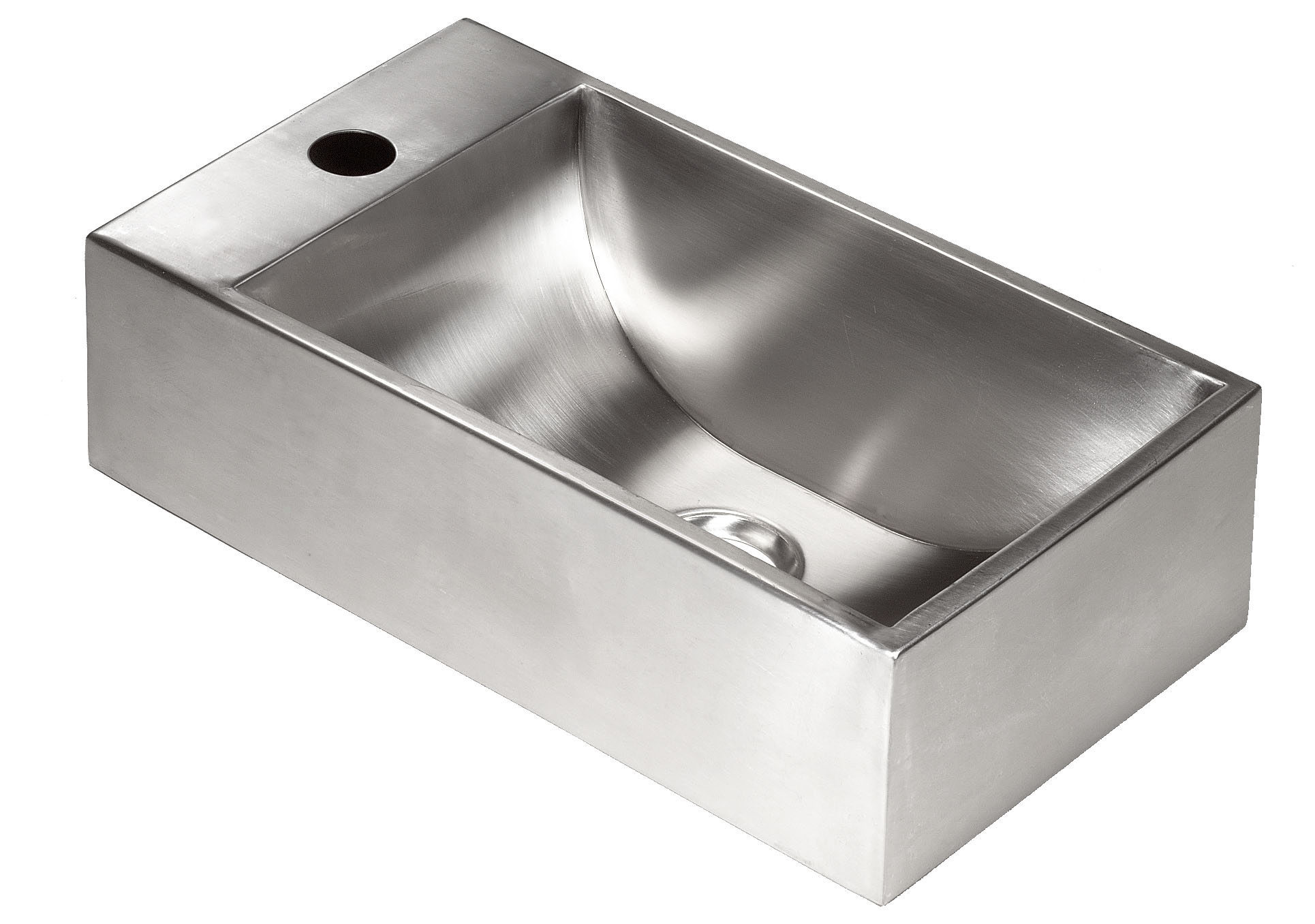 Handfat i rostfritt stål som är anpassat för mindre utrymmen. Levereras komplett med väggfäste. Material: AISI 304 Yttermått: 400 x 230 x 111 mm