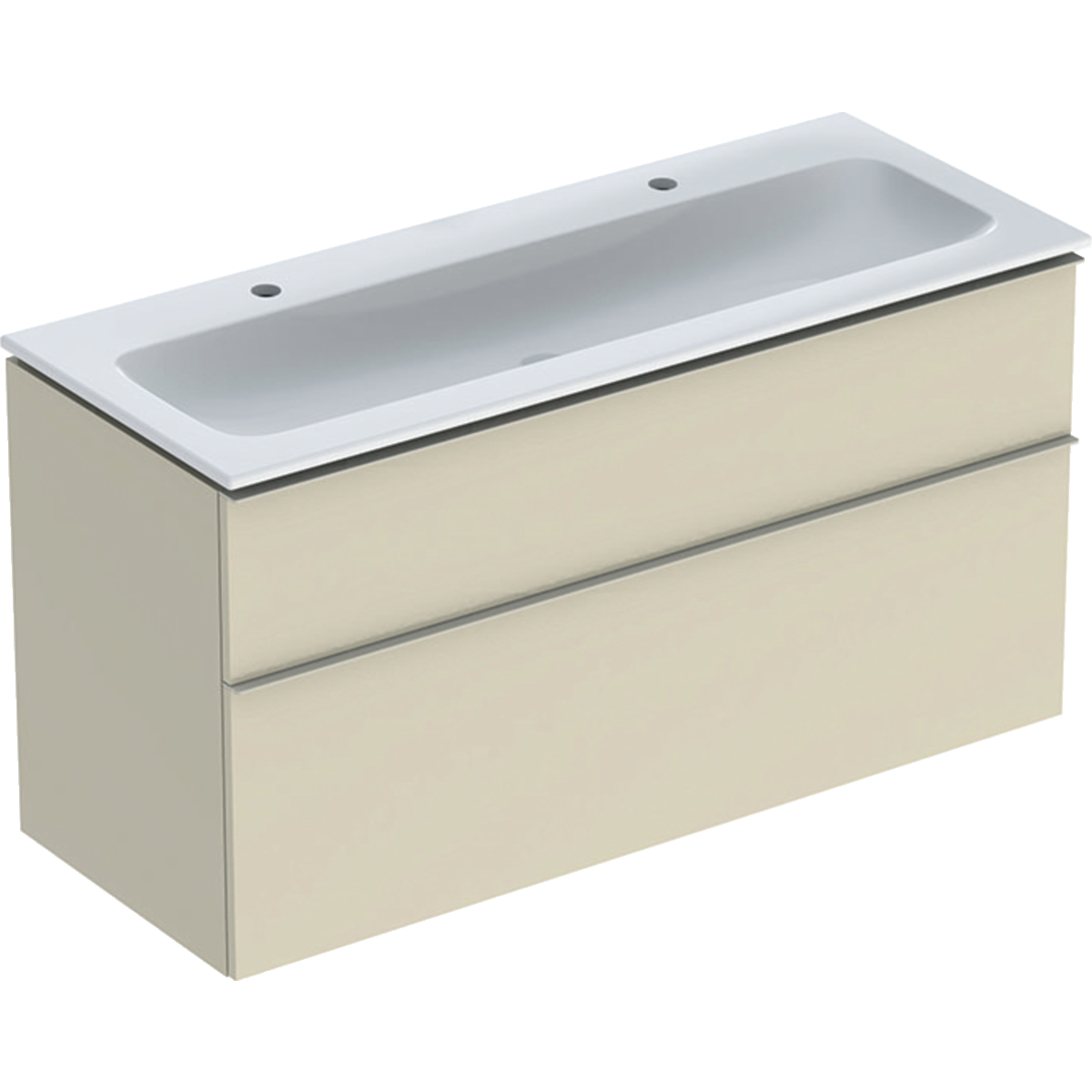 Geberit iCon sats möbeltvättställ tunn design, med tvättställsunderskåp, två lådor och anslutning till tvättställ: B=120cm, H=63cm, T=48cm, KeraTect/vit, sandgrå/lackerad högblank, sandgrått/pulverbelagt matt