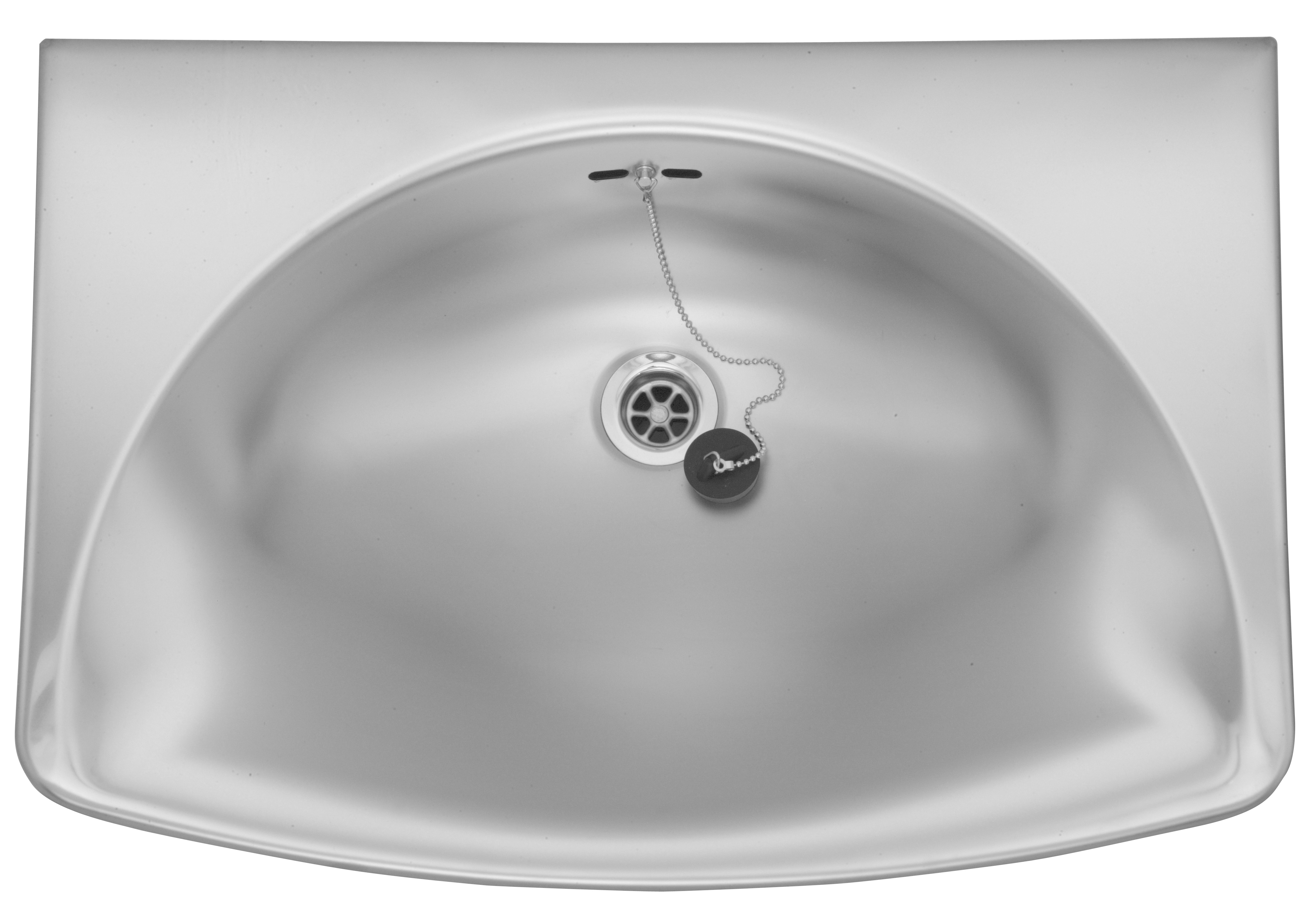 Tvättställ för väggmontage i rostfritt stål i satin finish. Levereras komplett med infällda konsoler och bottenventil 1 ¼". Med bräddavlopp. Vid förfrågan kan det levereras med hål för armatur. Yttermått: 600x415x130 mm.