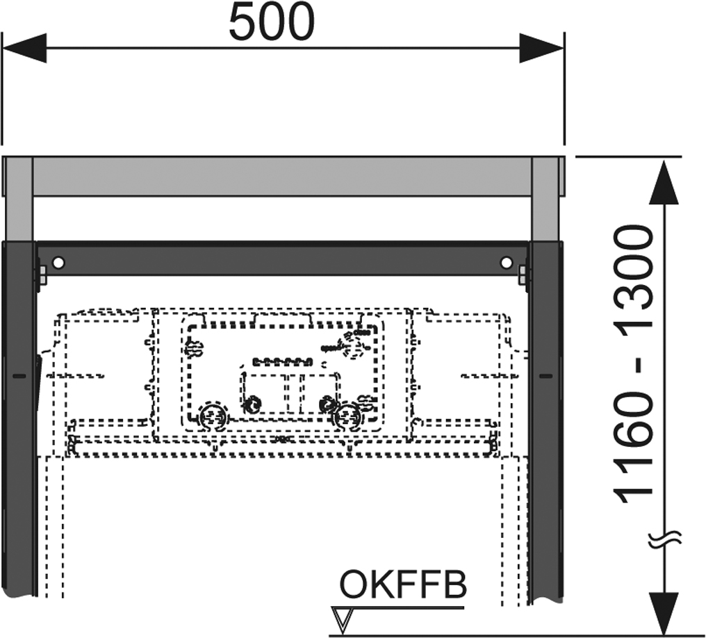 Toppbalk för att anpassa övre anläggningsyta av TECEprofil Inbyggnadsfixtur 1120 mm. Gör det möjligt att öka totala installationshöjden, 1160-1300 mm.
