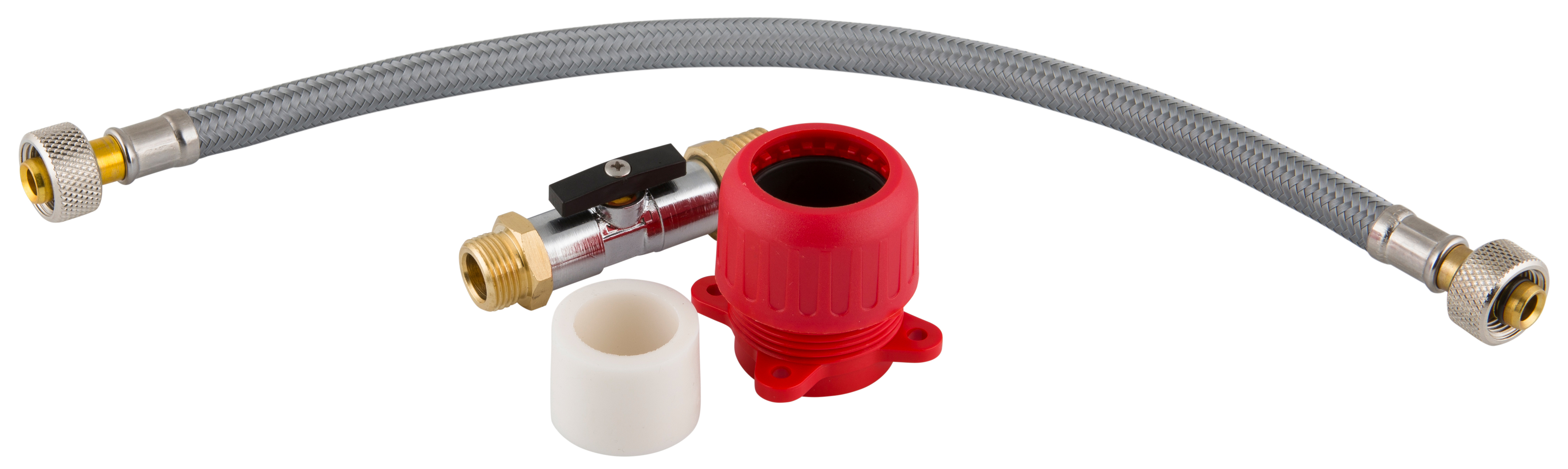 Vattenanslutningsset för WC-fixturer med utvändig vattenanslutning. Används för att flytta in vattenanslutningen i cisternen.