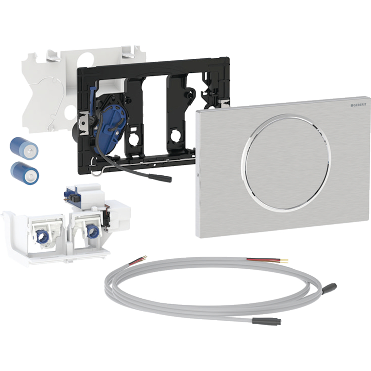 Geberit WC-styrning med elektronisk spolning, batteridrift, enkelspolning, spolplatta Sigma10, för armstöd, manuell