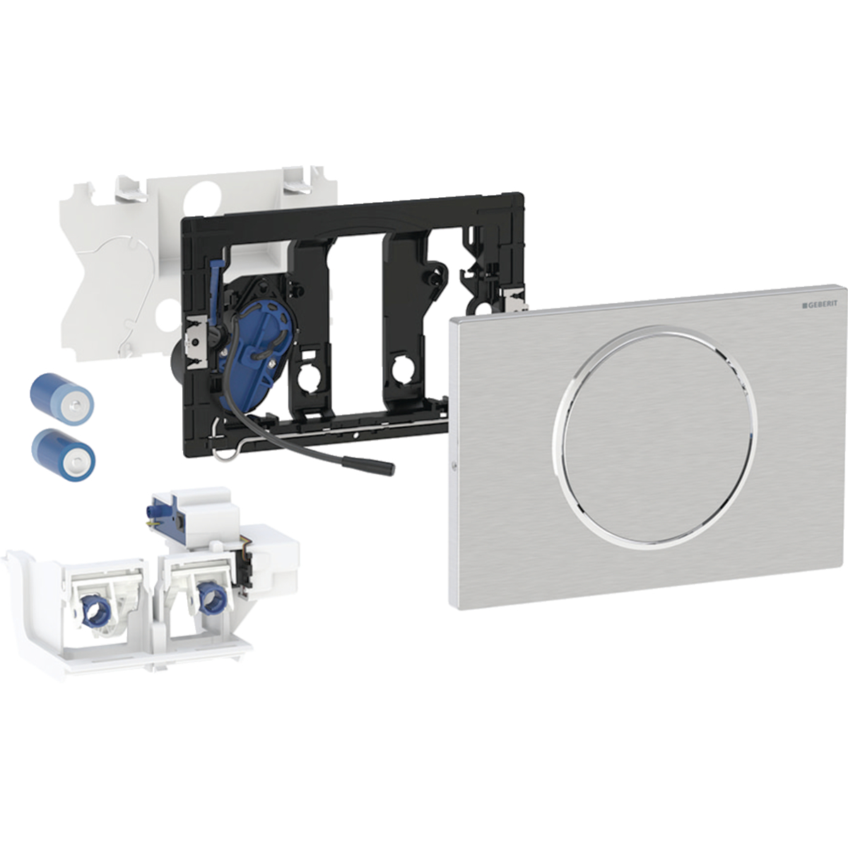 Geberit WC-styrning med elektronisk spolning, batteridrift, enkelspolning, spolplatta Sigma10, för armstöd, radiostyrd