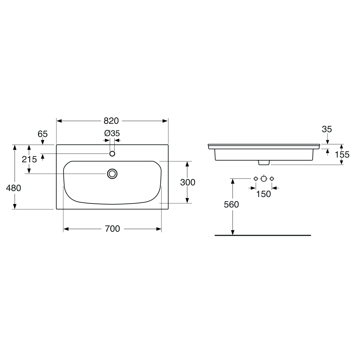 Gustavsberg Artic möbeltvättställ, avsett för Artic kommod 80 cm