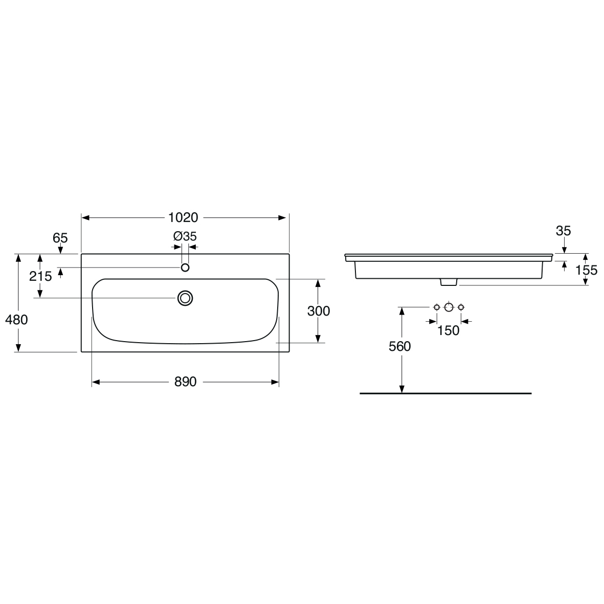 Gustavsberg Artic möbeltvättställ med 1 blandarhål. Avsett till Artic kommodskåp 100 cm